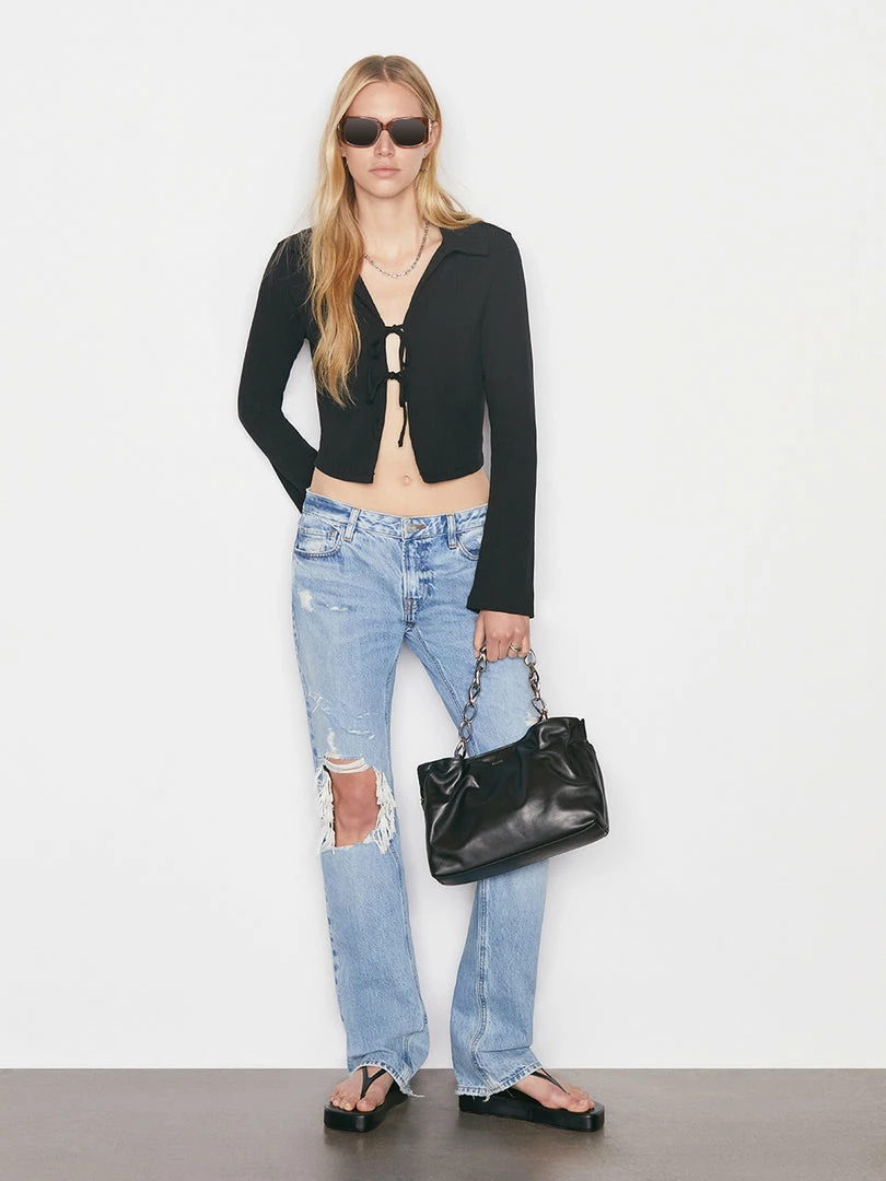 Promo π Frame-denim Bell Sleeve Rib Polo — Noir π© Women β