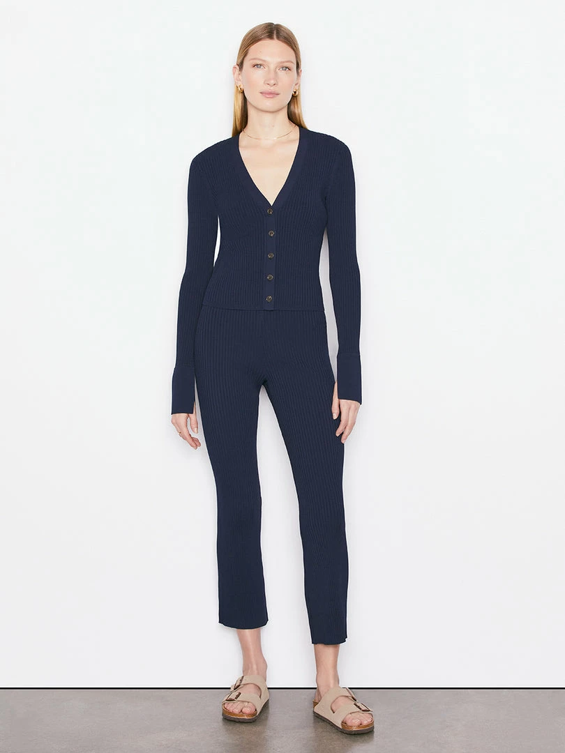 Designed to match the Button Front Cardi for the ideal chic-and-easy travel look, this sweater pant fits similarly to our coveted Mini Boot denim: with a mid-rise waist, slim fit through the thighs, and flattering, on-trend kick flare hem.