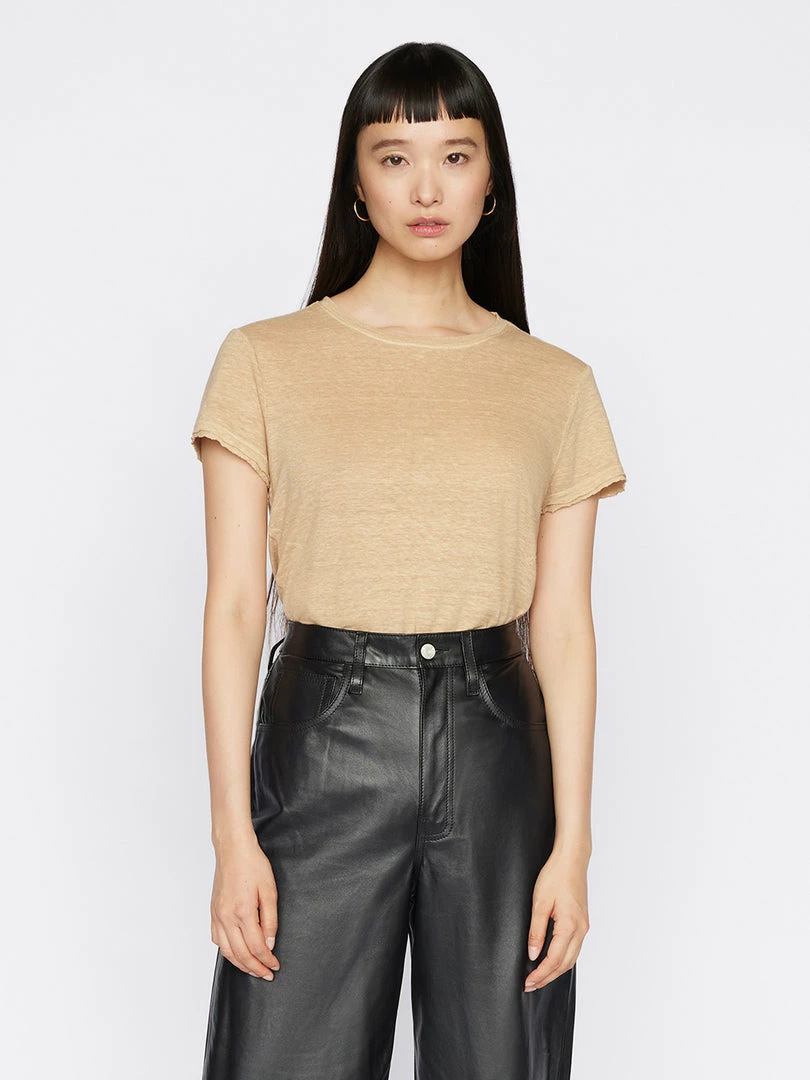 Crafted from light, breathable 100% organic linen for an elevated finish, this essential tee is slightly fitted through the body for the perfect fit. Even the short sleeves are cut to flatterβmaking this everyday tee a go-to for a laid-back yet pulled-together aesthetic.
