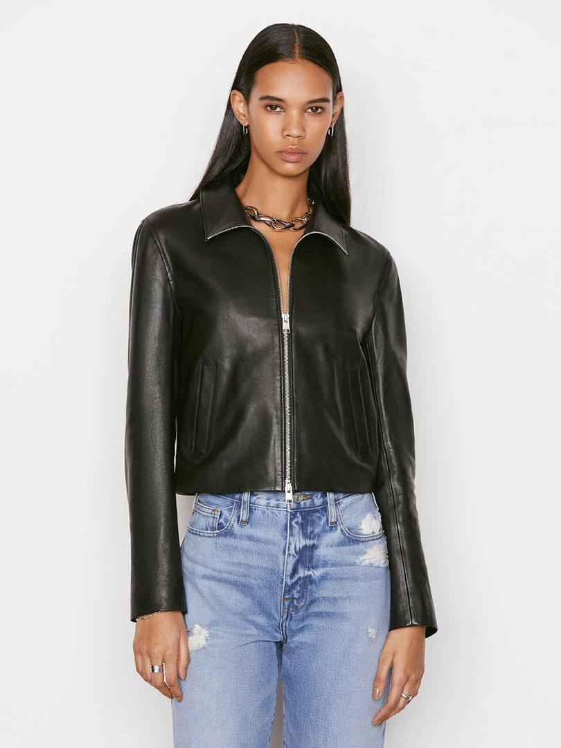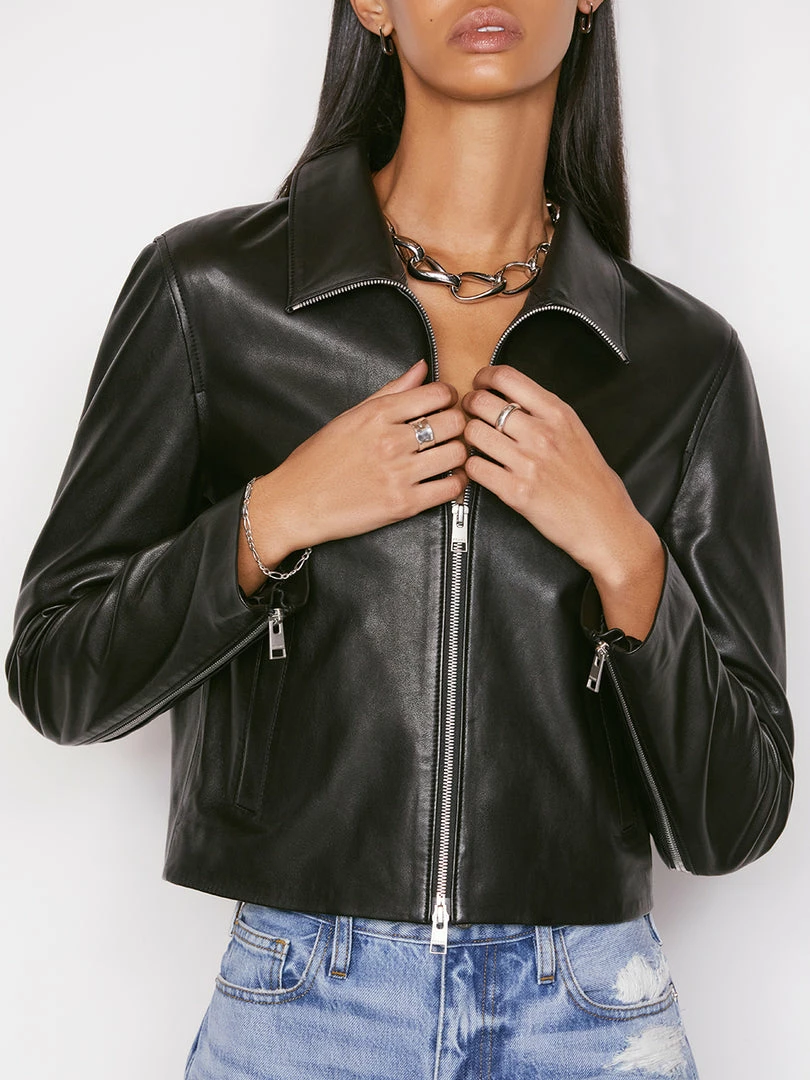 Coupon π― Frame-denim Exposed Zip Leather Jacket — Noir π© Women π