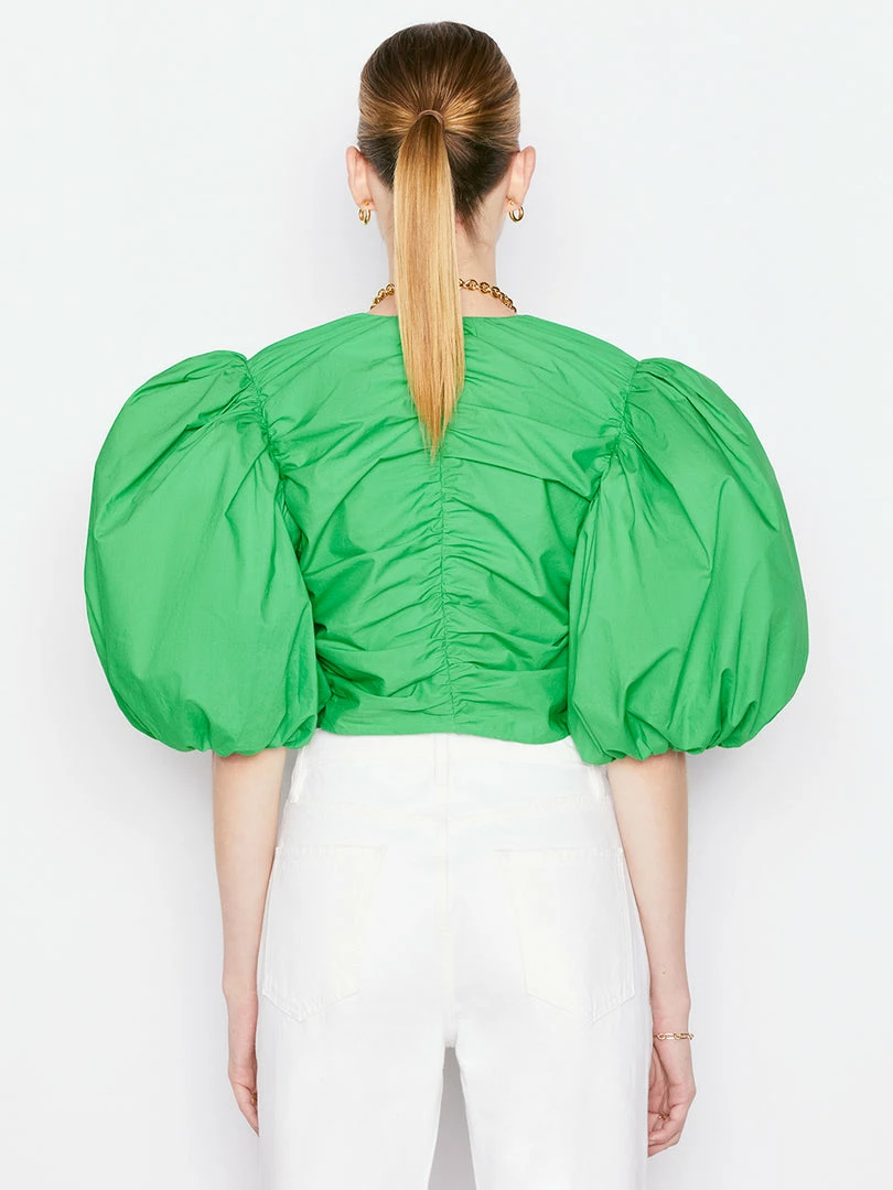 Promo π Frame-denim Gathered Puff Sleeve Top — Grass Green π© Women π