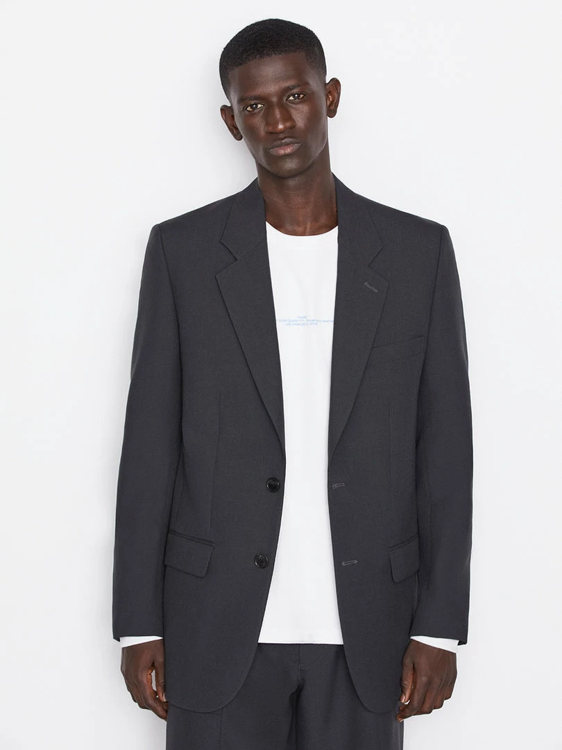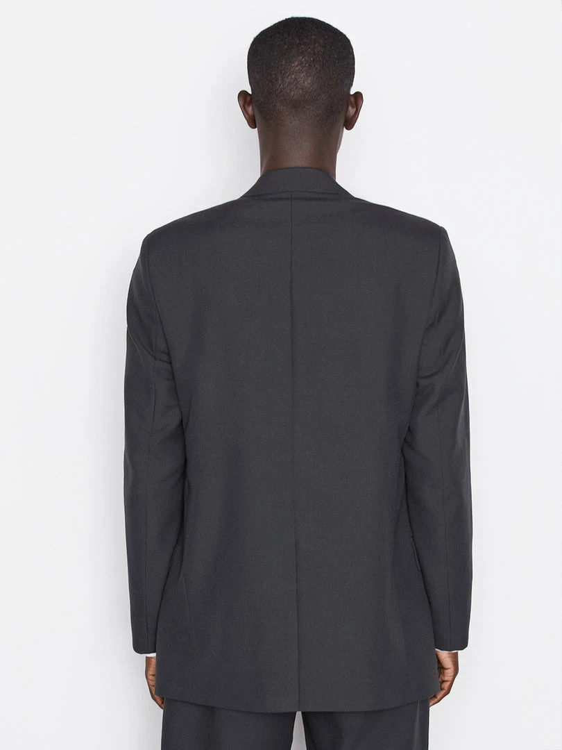 A classic wardrobe staple, this double breasted blazer is crafted from fine Italian wool, for a luxurious look that delivers traditional sport coat fit with modern tailoring. Fully lined with a slightly padded shoulder and back vent, this piece is finished with horn buttons and the FRAME insignia.