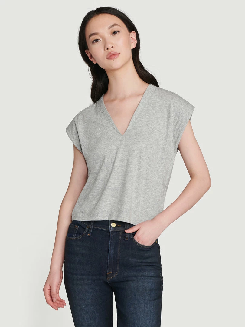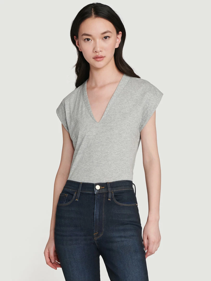 Cheapest ⌛ Frame-denim Le High Rise V Neck Tee — Gris Heather ❤️