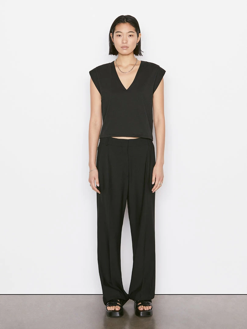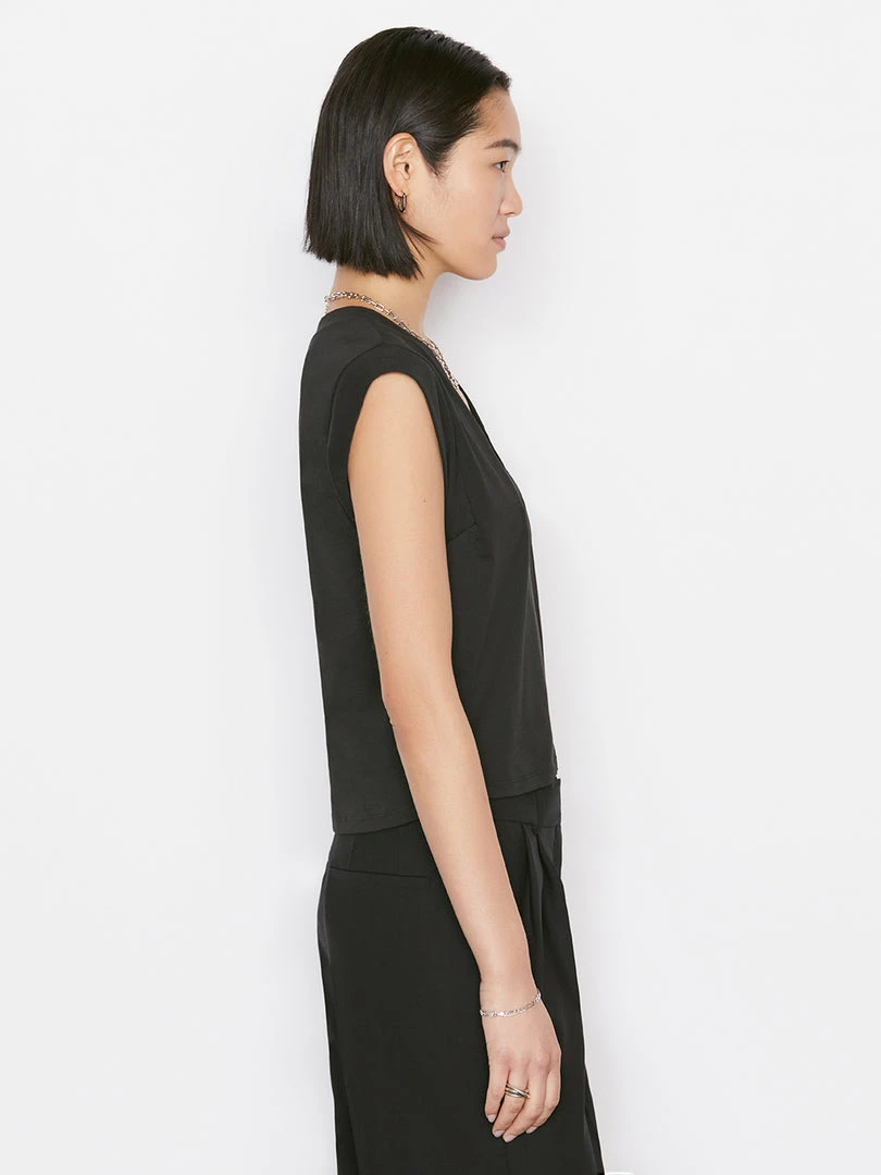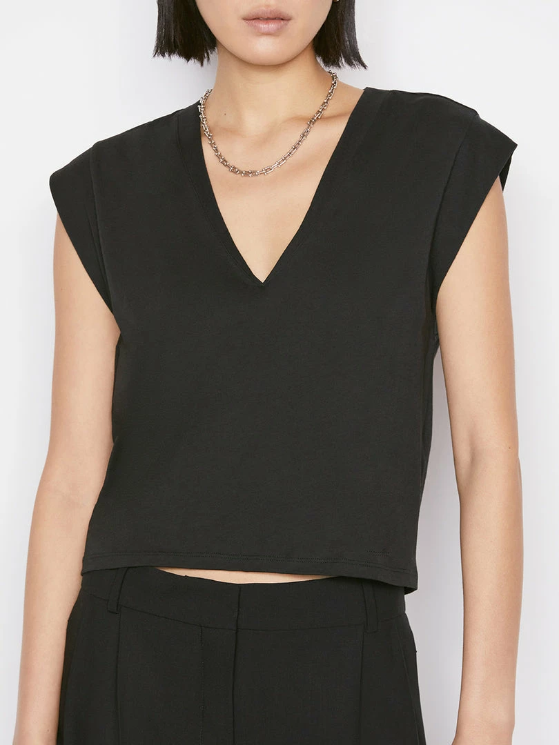 New π― Frame-denim Le High Rise V Neck Tee — Noir π€©