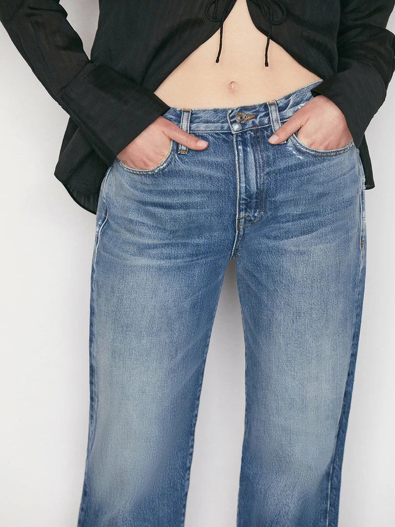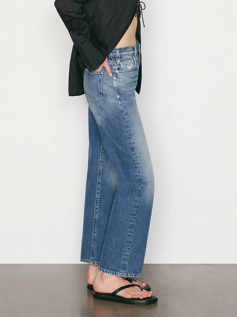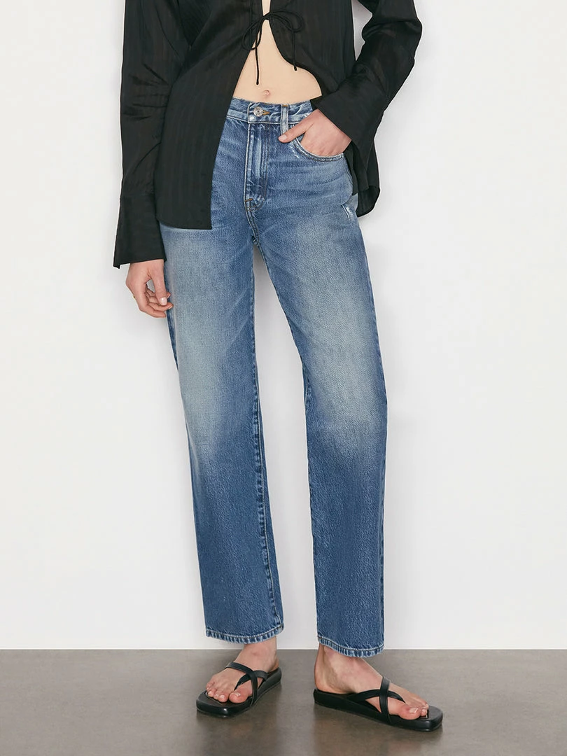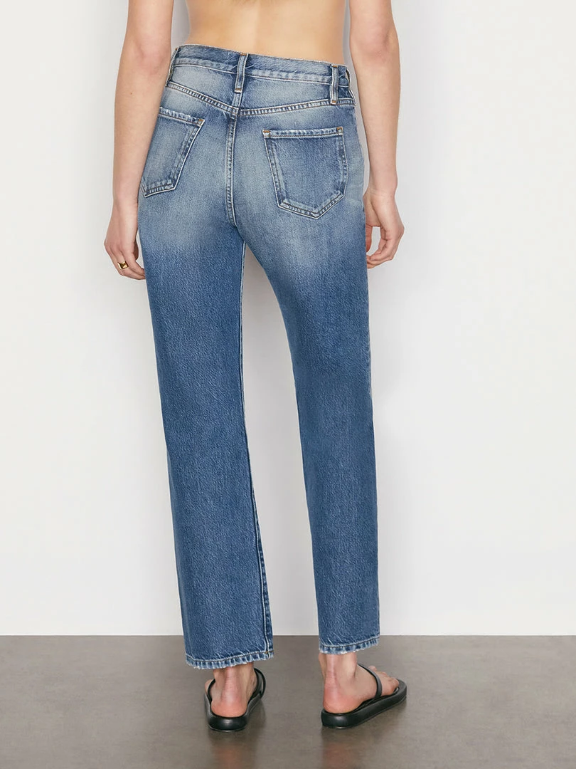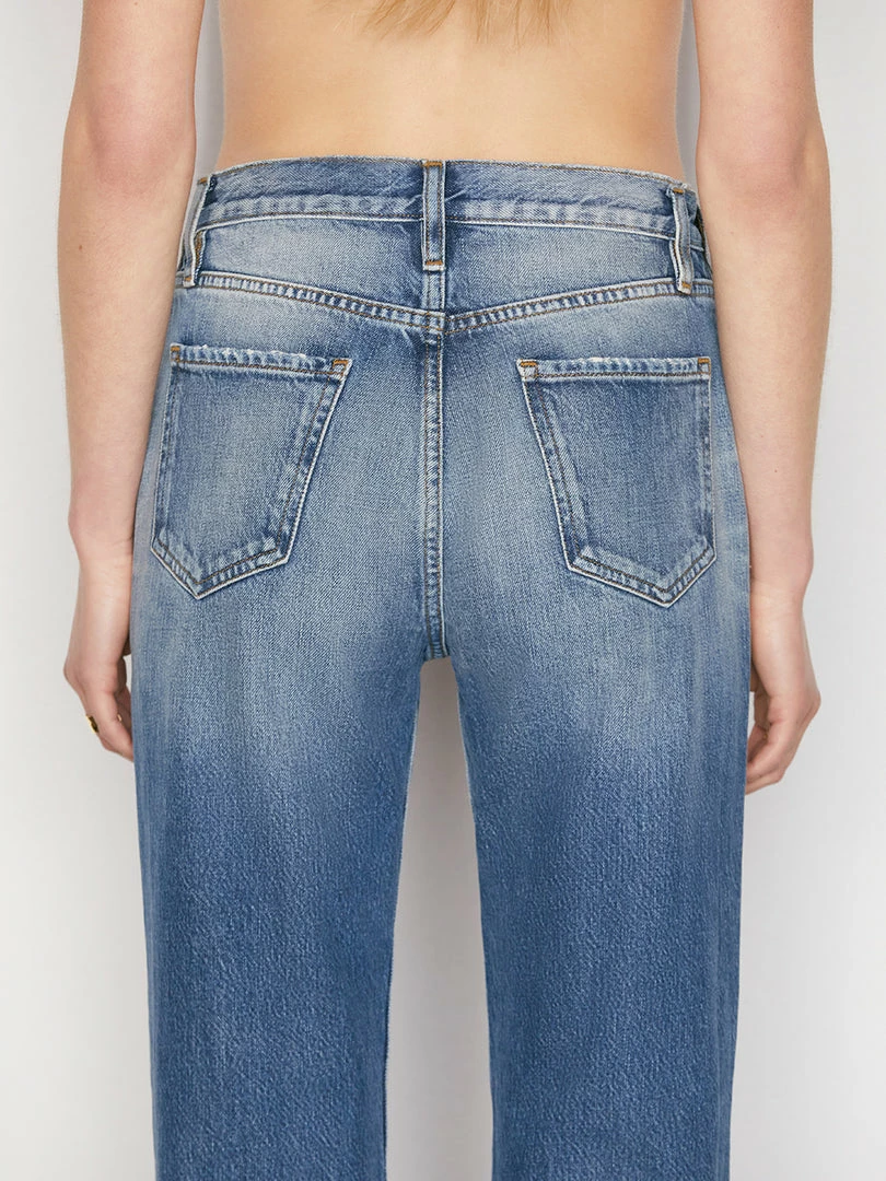 Our beloved Le Jane fit, in a flattering, on-trend crop length. This ultra-high-rise jean is fitted through the hips, slightly relaxed at the thigh, and straight through the legs for a nostalgic look. Made from sustainable materials, this rigid denim breaks in beautifully and is finished with a vintage-inspired worn indigo wash.