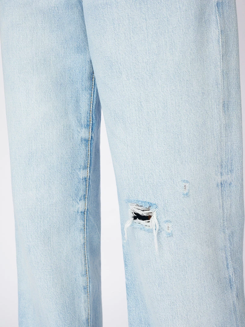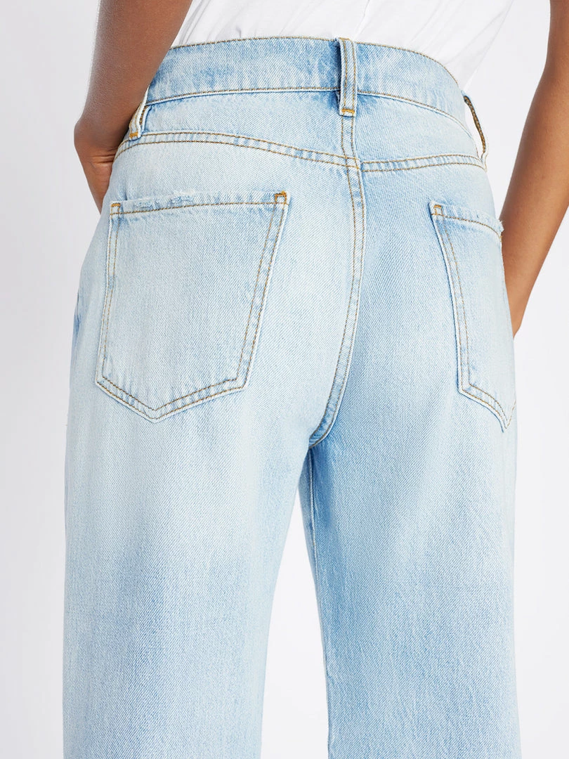 This ultra-high-rise jean is fitted through the hips, slightly relaxed at the thighs, and straight through the legs for a nostalgic look. Winslow is a pale blue hue crafted from rigid denim washed down to a soft, vintage wash you’ll want to live in.