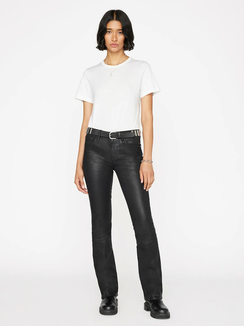Our mid-rise, boot-cut fit elevated for day or night with a sleek, supple, coated finish over premium Noir denim. Expertly tailored for comfort and a close fit through the seat and thighs, with a kick flare that starts at the knee and finishes with a clean full-length hem.