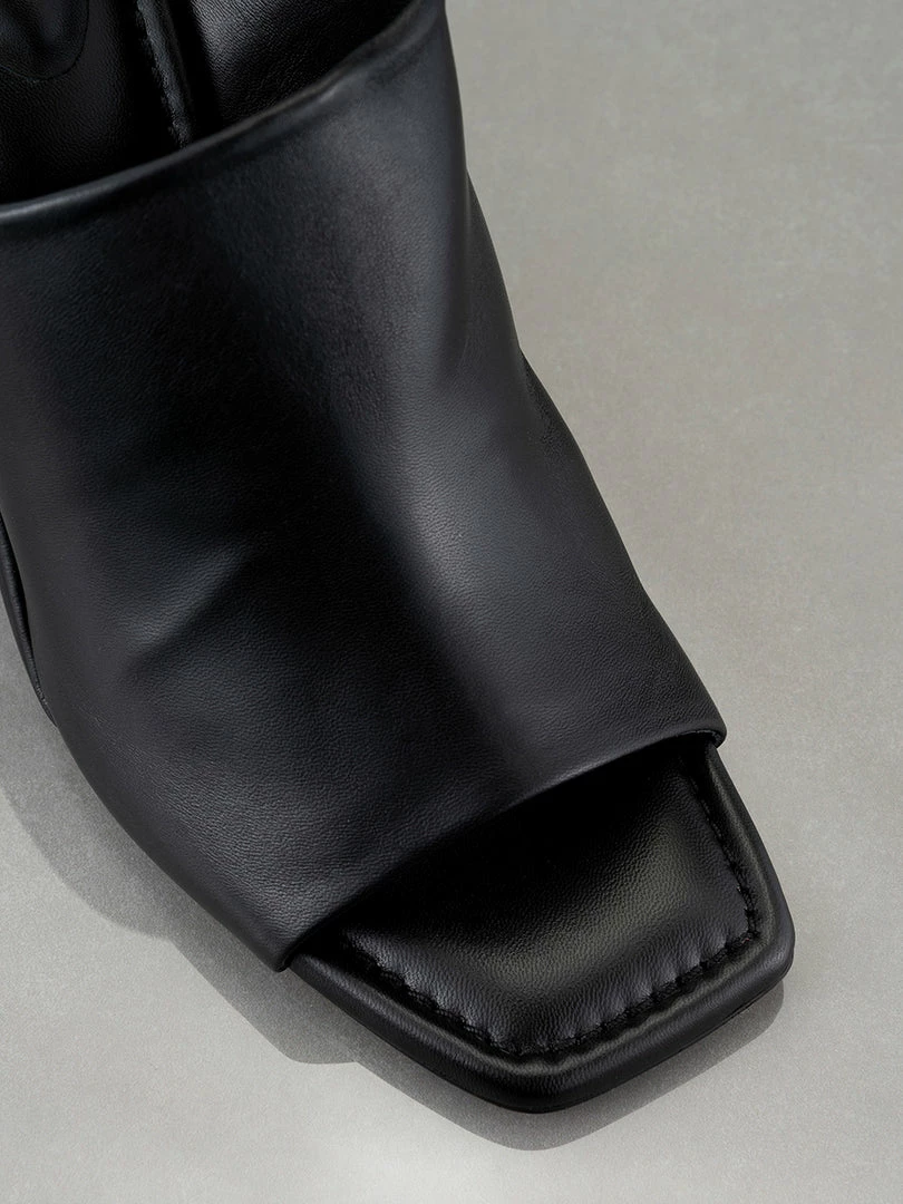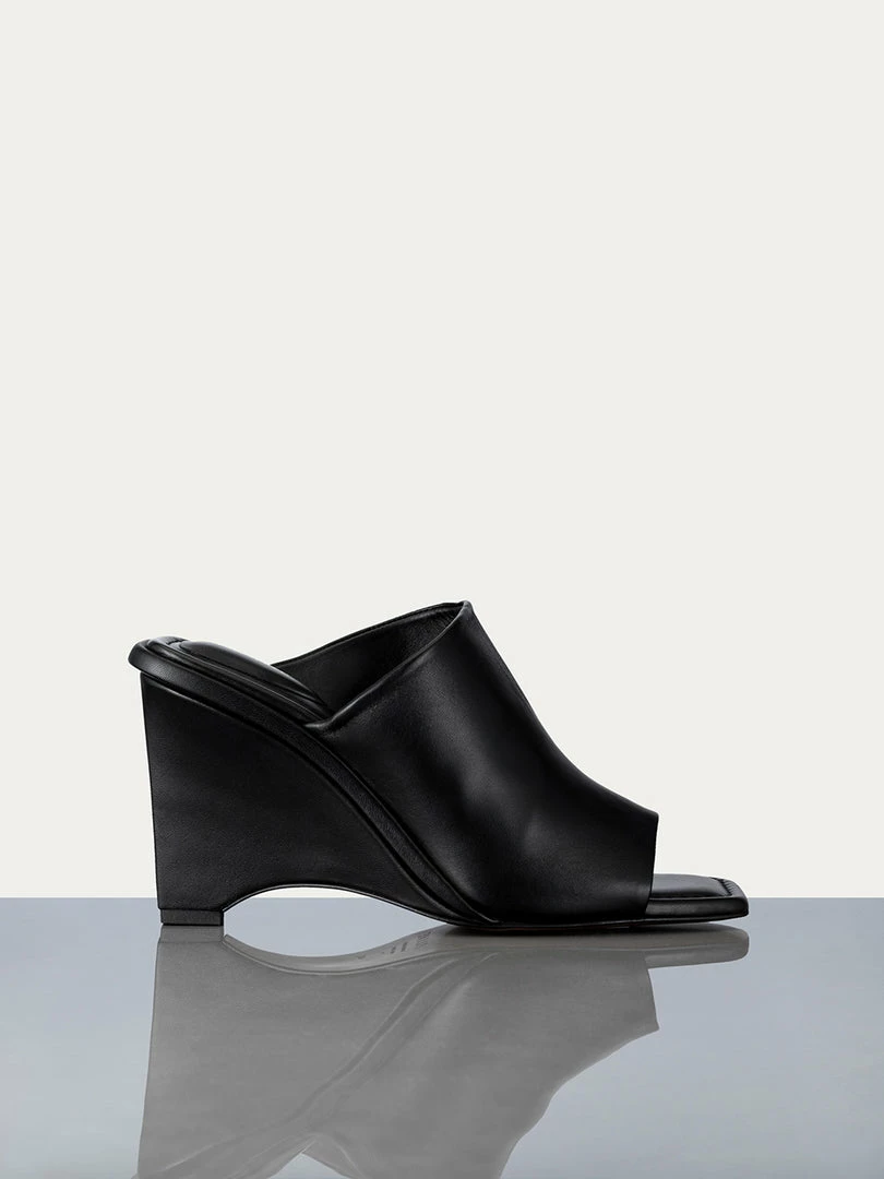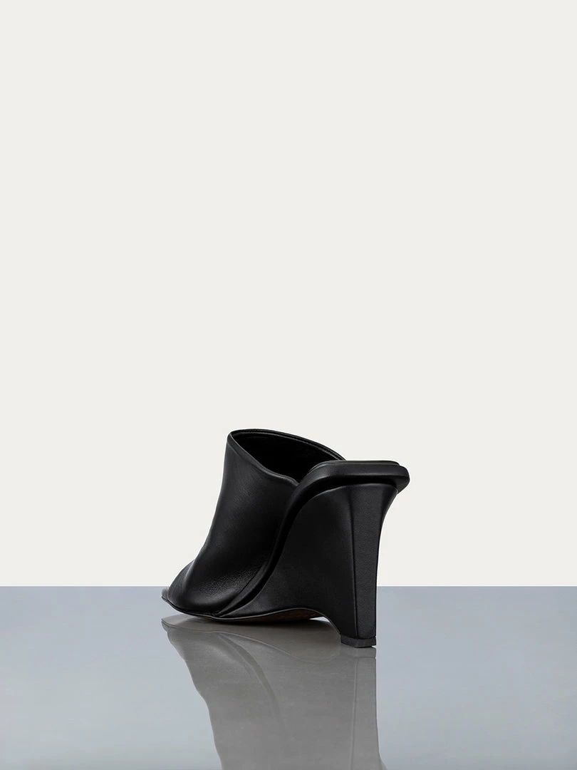 Le Naomi is a modern take on the β90s-inspired mule, done in rich black 100% leather. With a padded sole for comfort and a high heel for a flattering silhouette, this easy-on, easy-off style is the ideal day-to-night shoe.