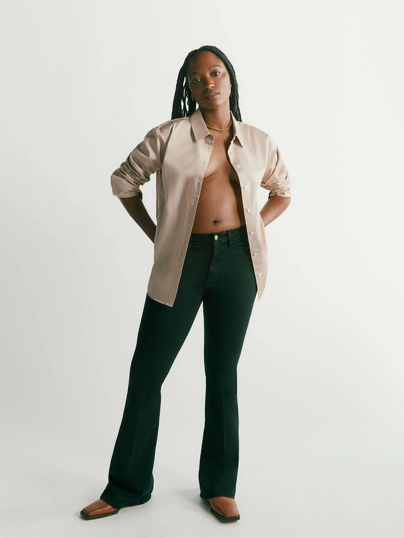 Our Le One Flare features an adaptable stretch fabric and comes in two sizesβ Size 1 for sizes 23 to 28 and Size 2 for sizes 29 to 34βto evolve with you in your wardrobe for years. This sustainably made pairβfeaturing a high waist and subtle, leg-lengthening flareβis made with organic cotton that meets certified global recycling standards.