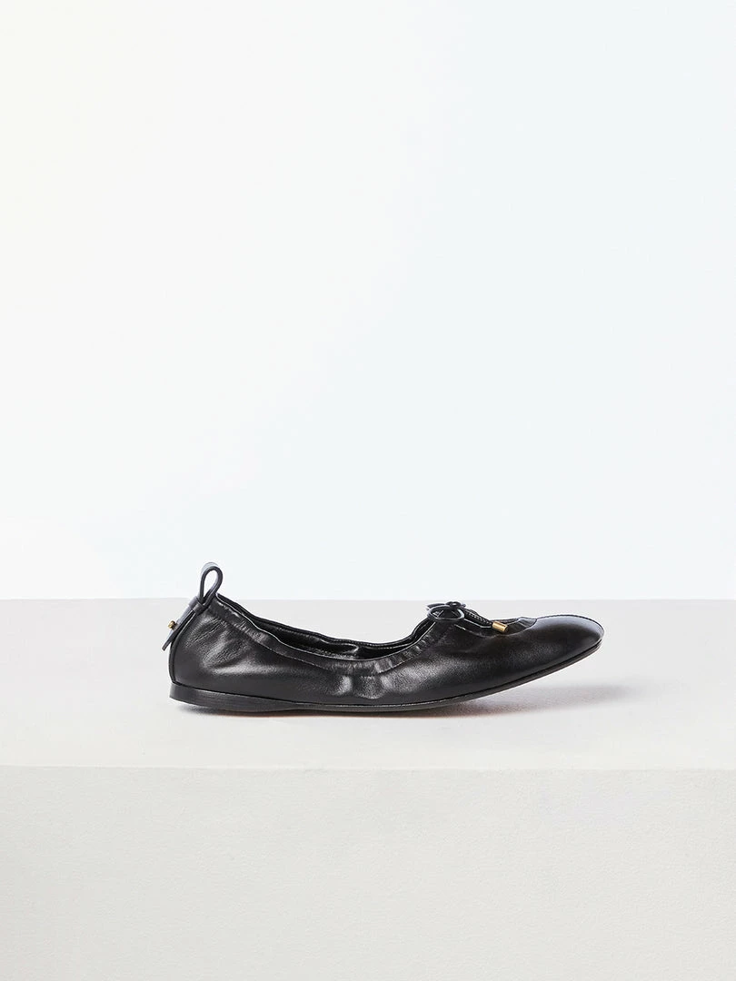 The perfect modern ballet flat, this square-toe silhouette is crafted from supple Italian leather with a peek-a-boo cutout and hand-painted edges. More than sleek, this pair features a memory foam insole with a rubber sole for all-day comfort.