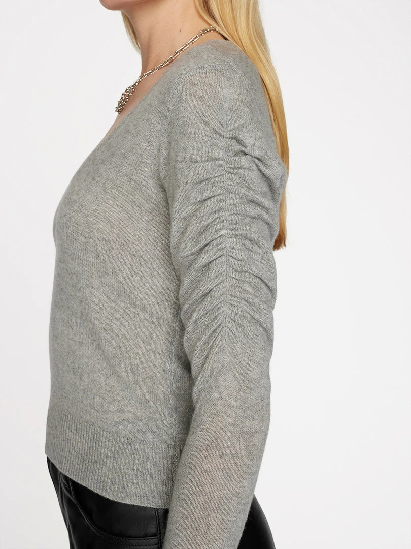 This scoop-neck sweater is knit from sustainable cashmere, with a sweet shirred detail at the sleeve. Leave the full-length hem tucked or untucked, show off your necklace stack, and style this knit under a blazer or boxy moto jacket.