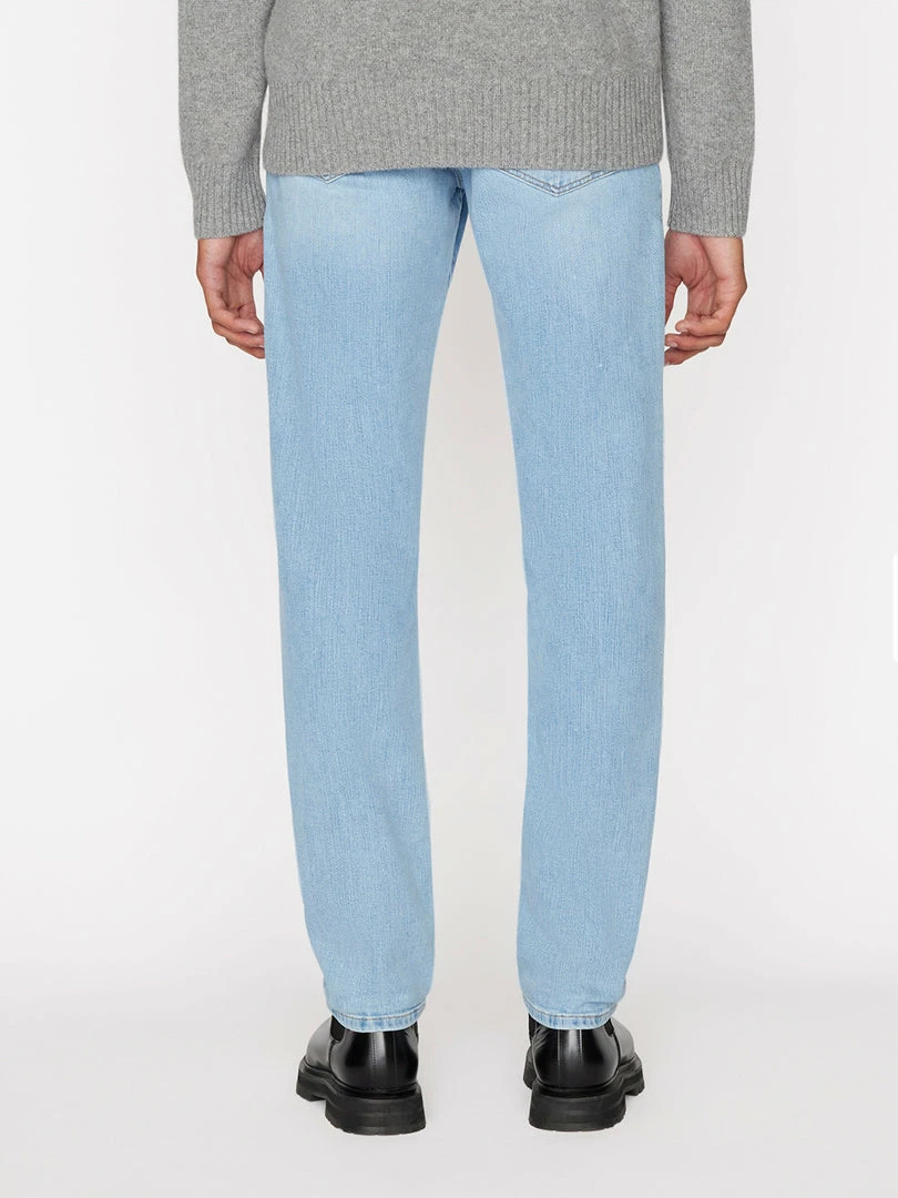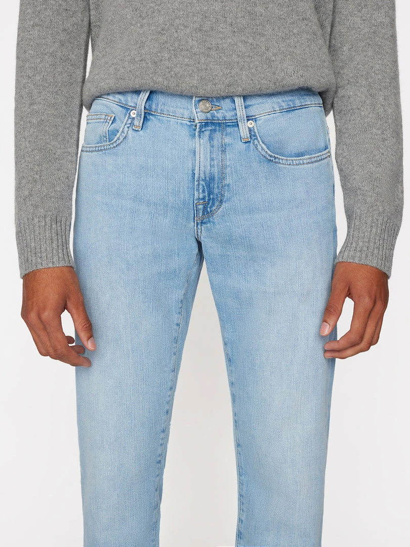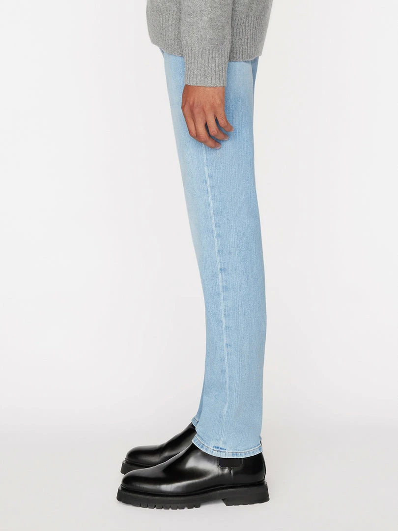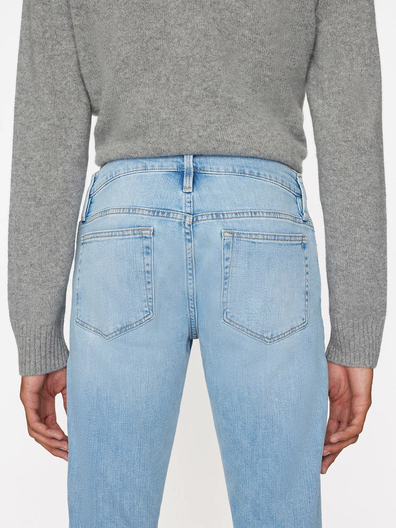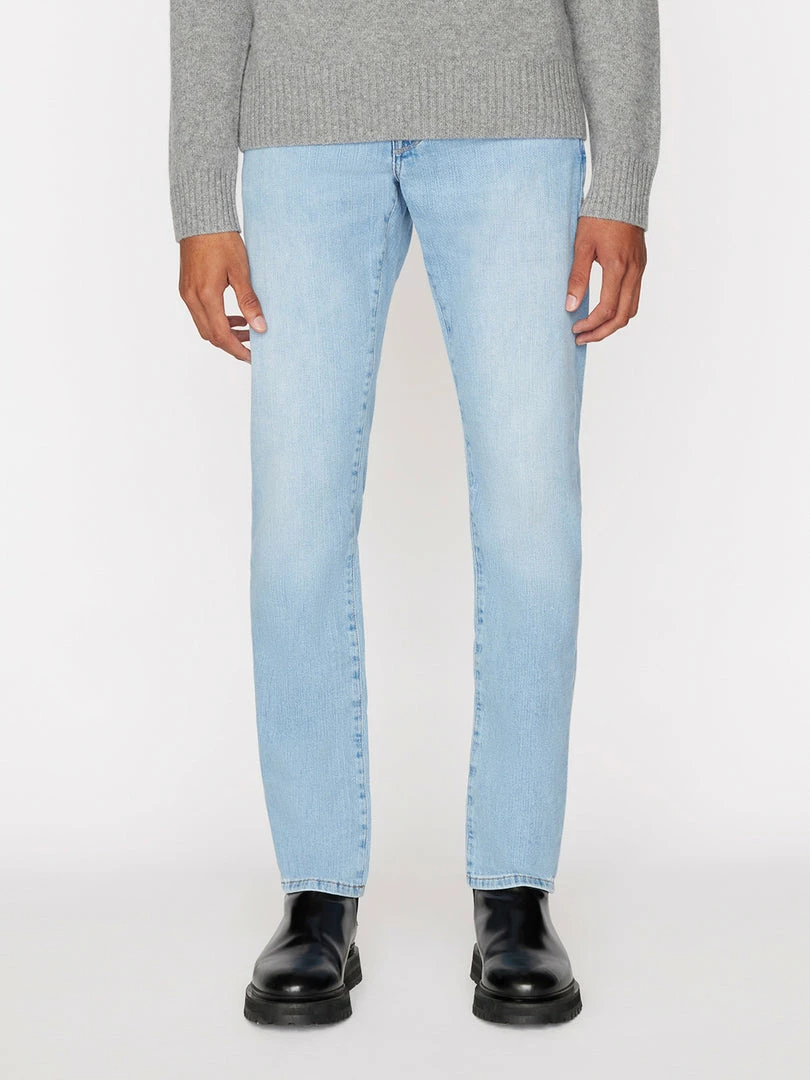 Our bestselling slim straight leg fit, cut from premium denim in a medium-blue wash with a bright finish. This signature FRAME style features classic 5-pocket construction, a standard mid-rise waist, and slight tapering at the hem.