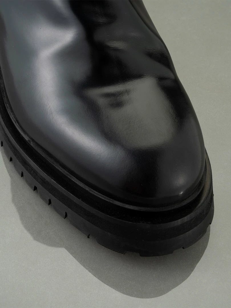 A modern take on the classic Chelsea boot, this calf-grazing style features gripped rubber-lug soles and elasticated sides to easily slip on and off. Theyβre crafted from 100% leather, making them a well-made pair to stand the test of time.