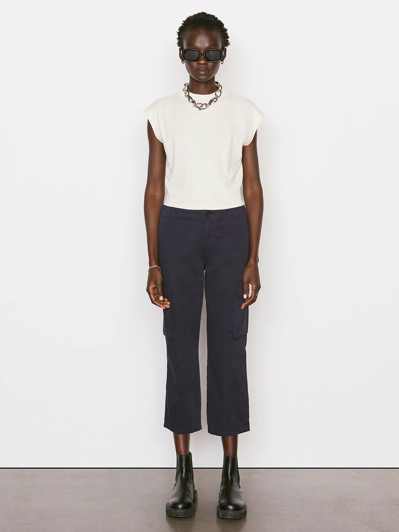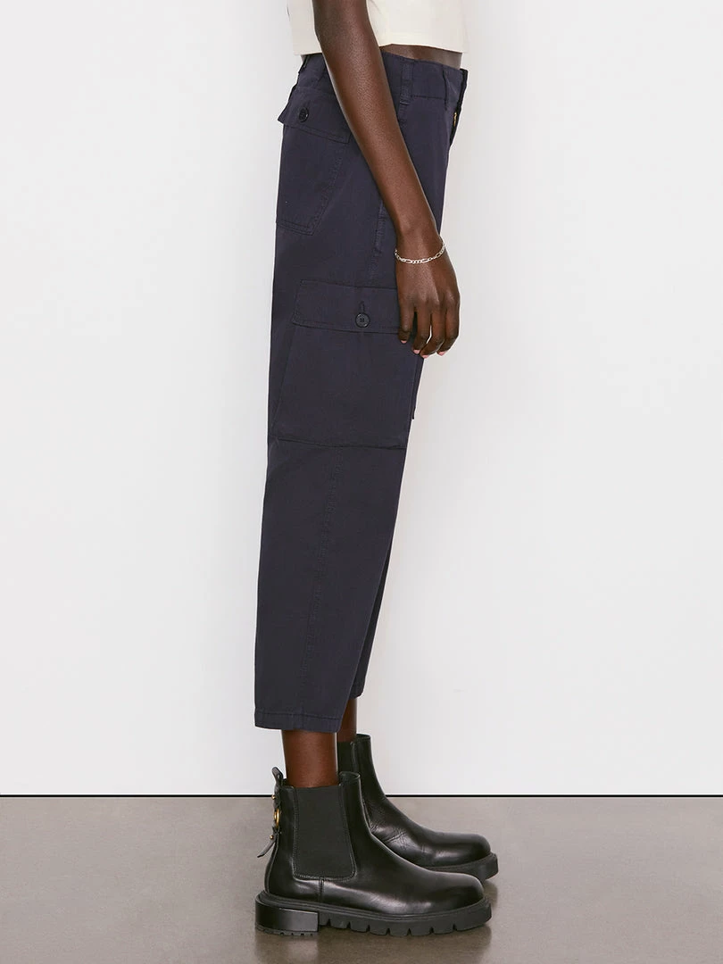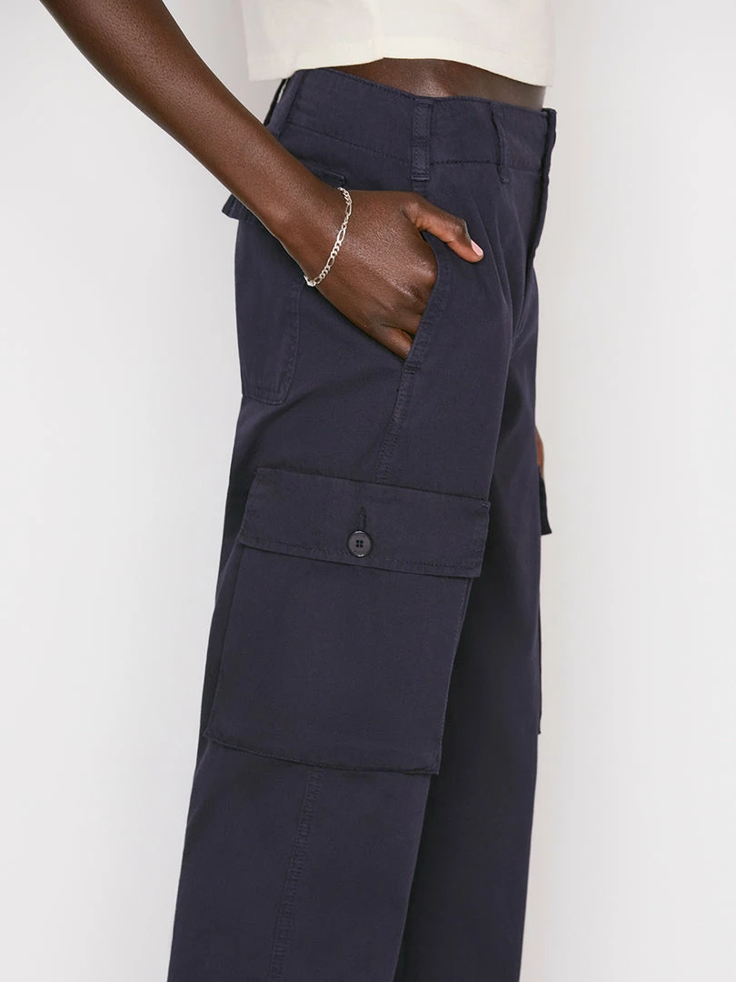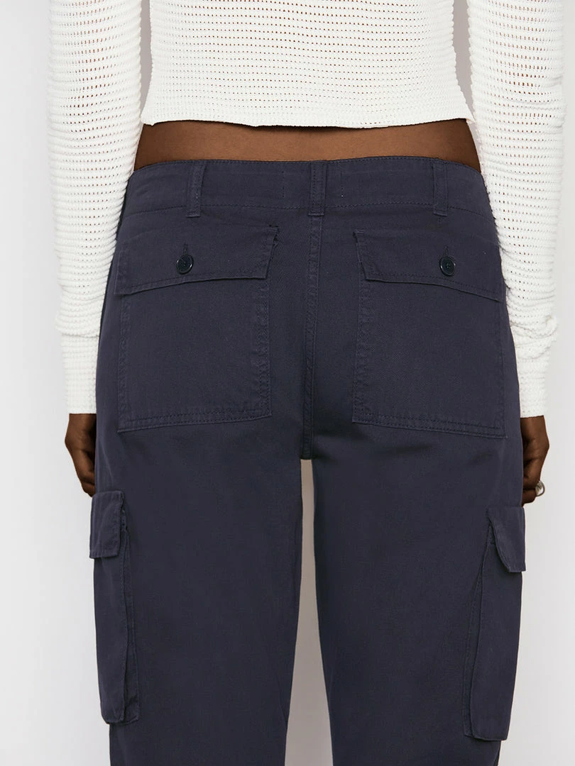 An elevated take on the utility trend in a lightweight woven fabric, this mid-rise trouser features a loose, relaxed fit, plus on-trend cargo pockets. The navy colorway complements white heels and a blazer as well as it does a white tee and trainers.