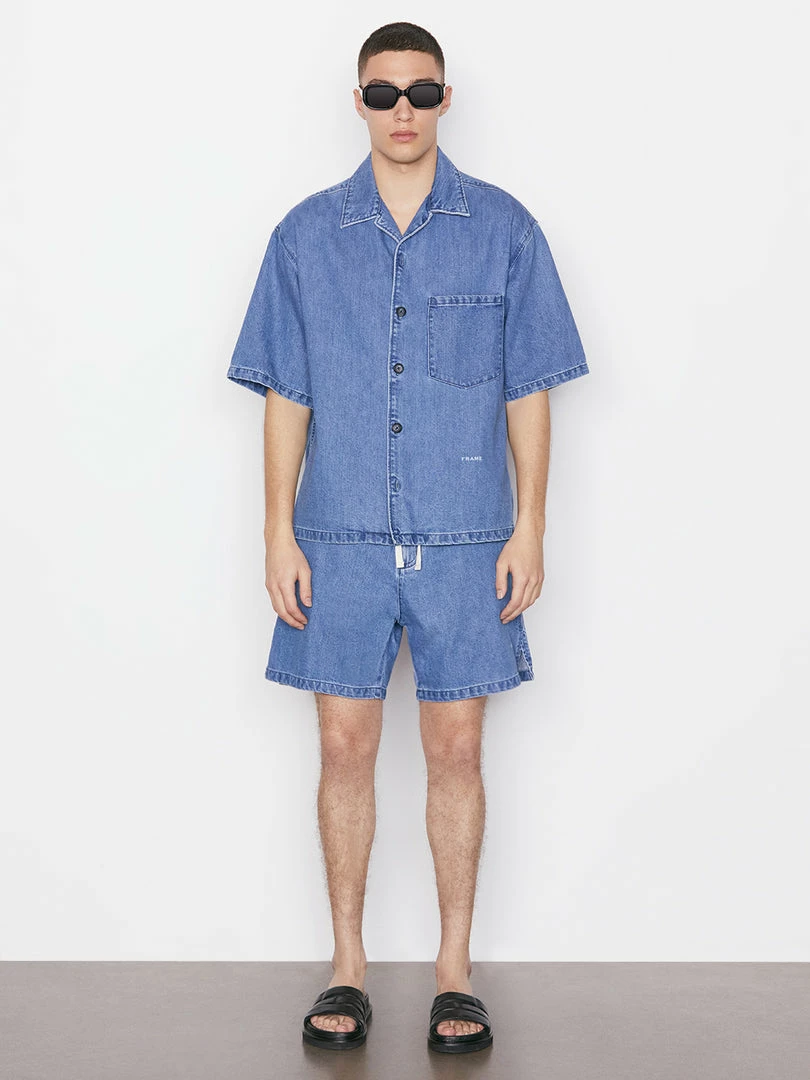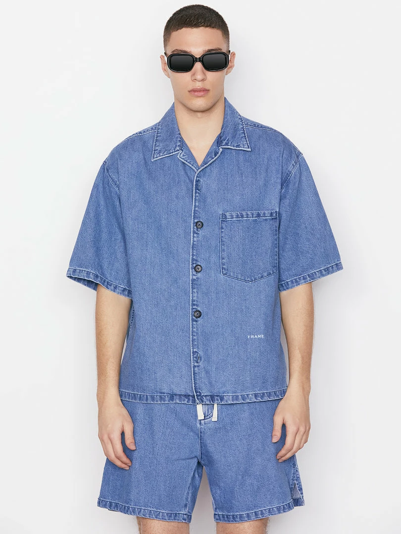 Cheapest βοΈ Frame-denim Short Sleeve Silk Denim π Shirt — Blue Jean Men π