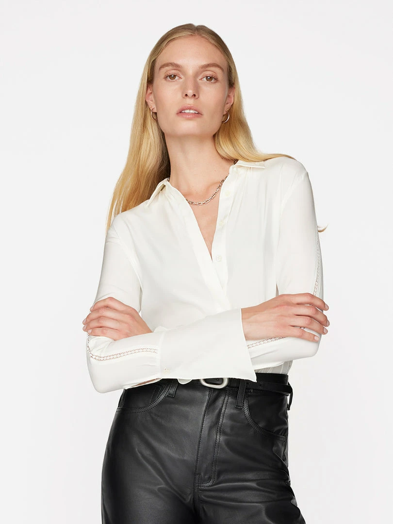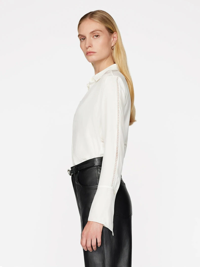 Budget π Frame-denim Slim Lace Inset π Shirt — Off White π€©