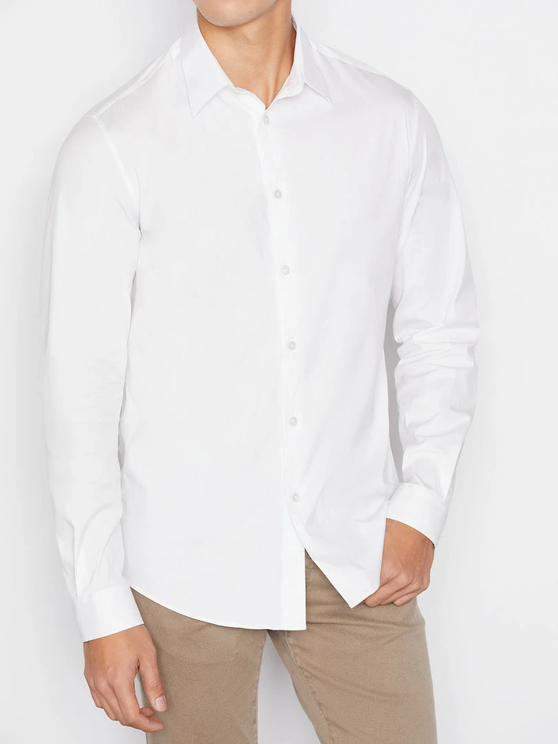 A luxurious dress shirt that can be dressed up or down, this 100% cotton poplin shirt features a little stretch for comfort, pearl buttons for style, and an extended hem for tucking in or wearing long over a more laid-back fit. Itβs the ideal shirt day-to-wherever-the-night-takes-you dressing.