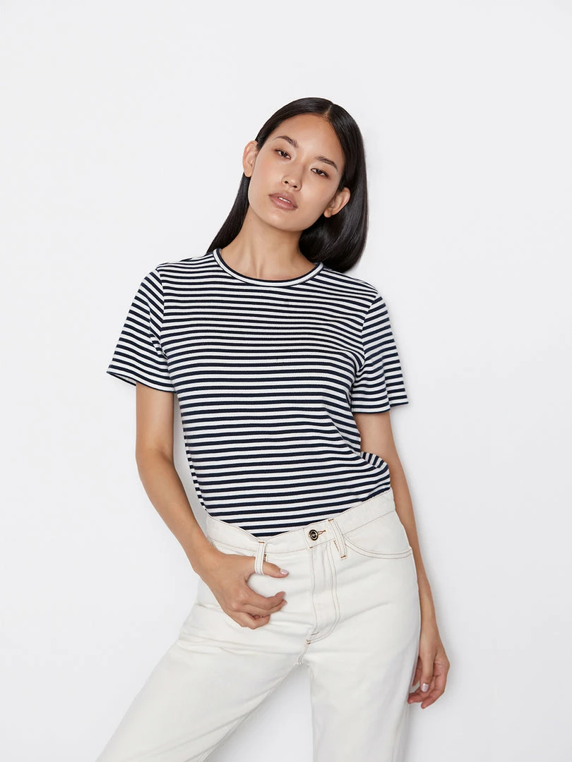 Wholesale β€οΈ Frame-denim Striped Crewneck Tee — Navy Multi π€©