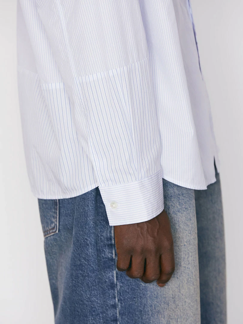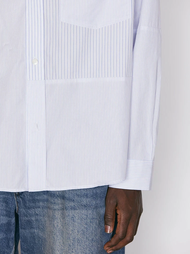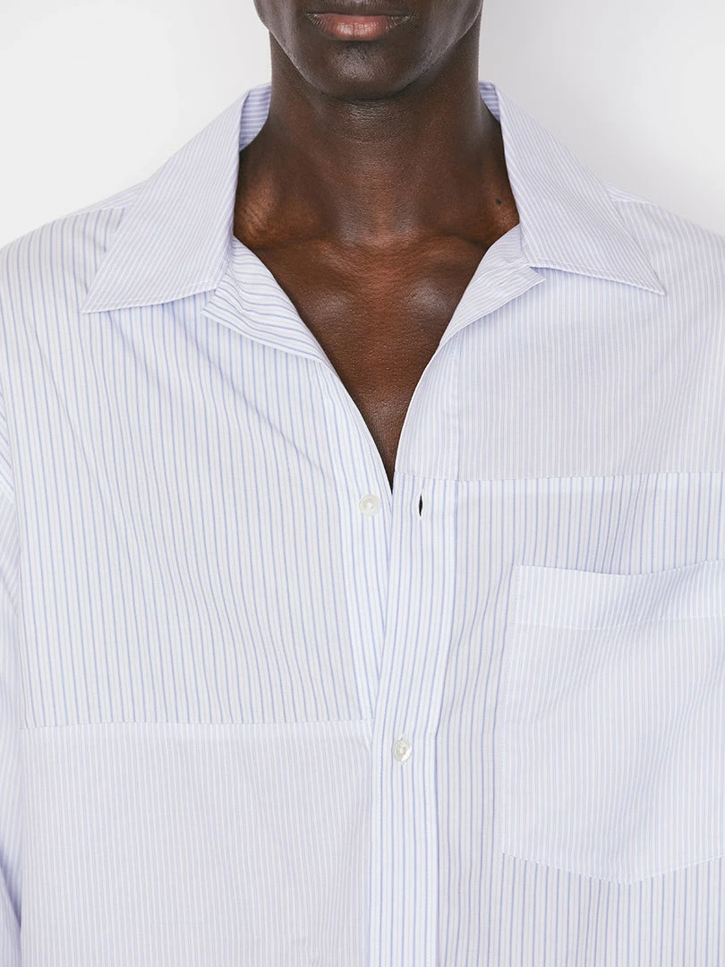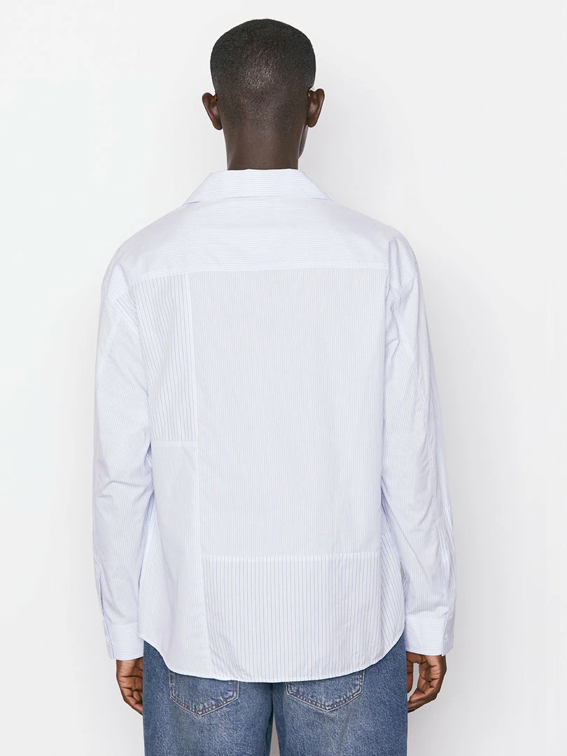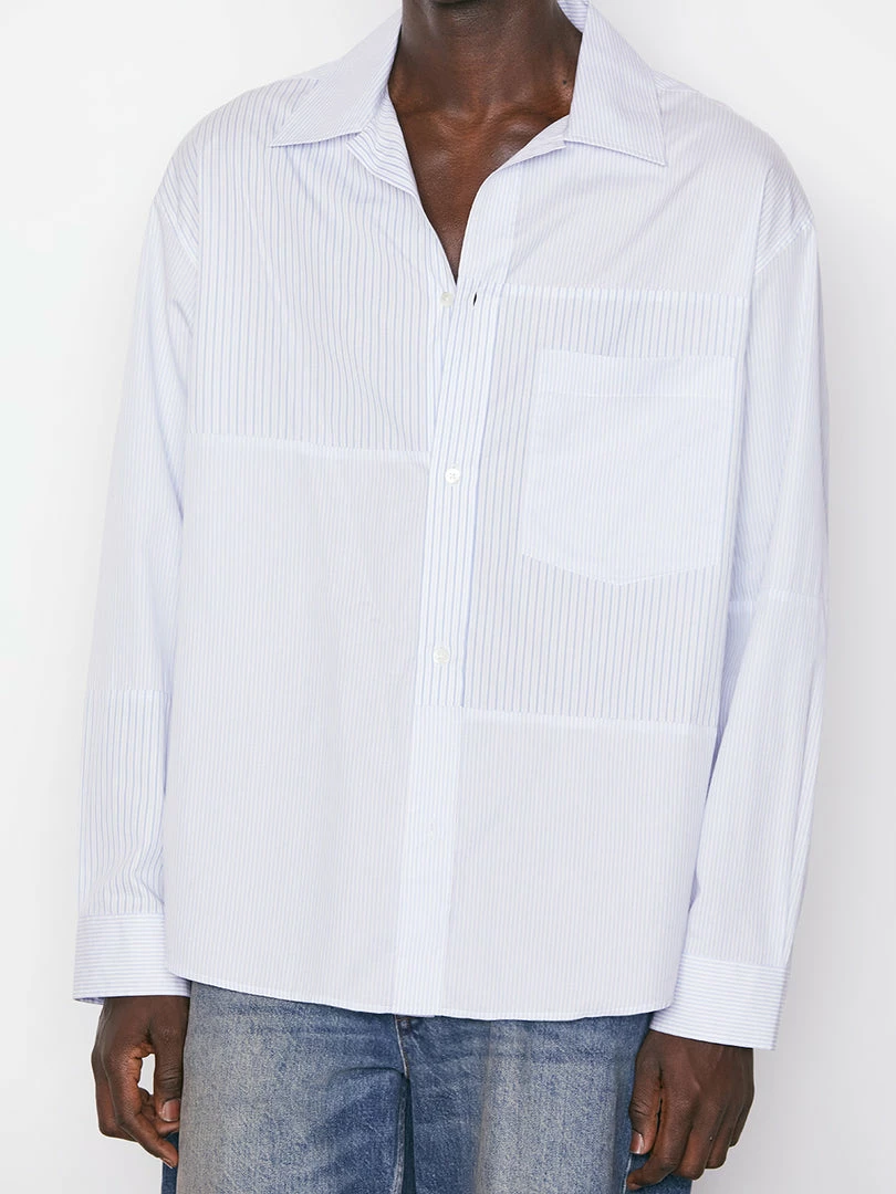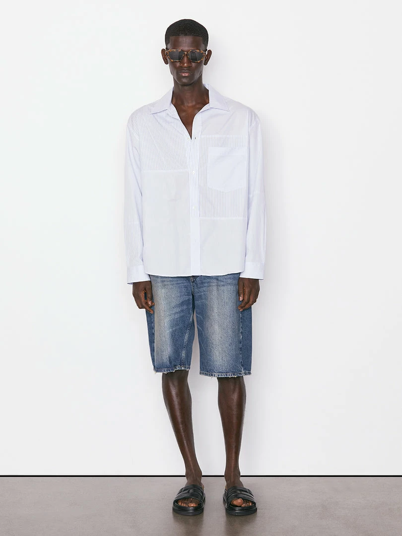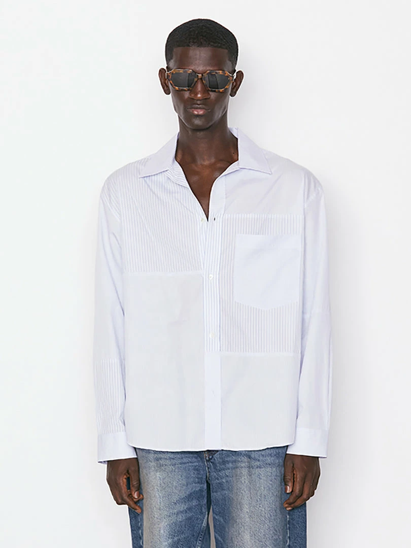The sharp collar and finished seams keep this button-down crisp enough for the workday, and patchwork styling in white and summer stripes leave you appropriately dressed for summer evening adventures when you walk out at the end of the day.