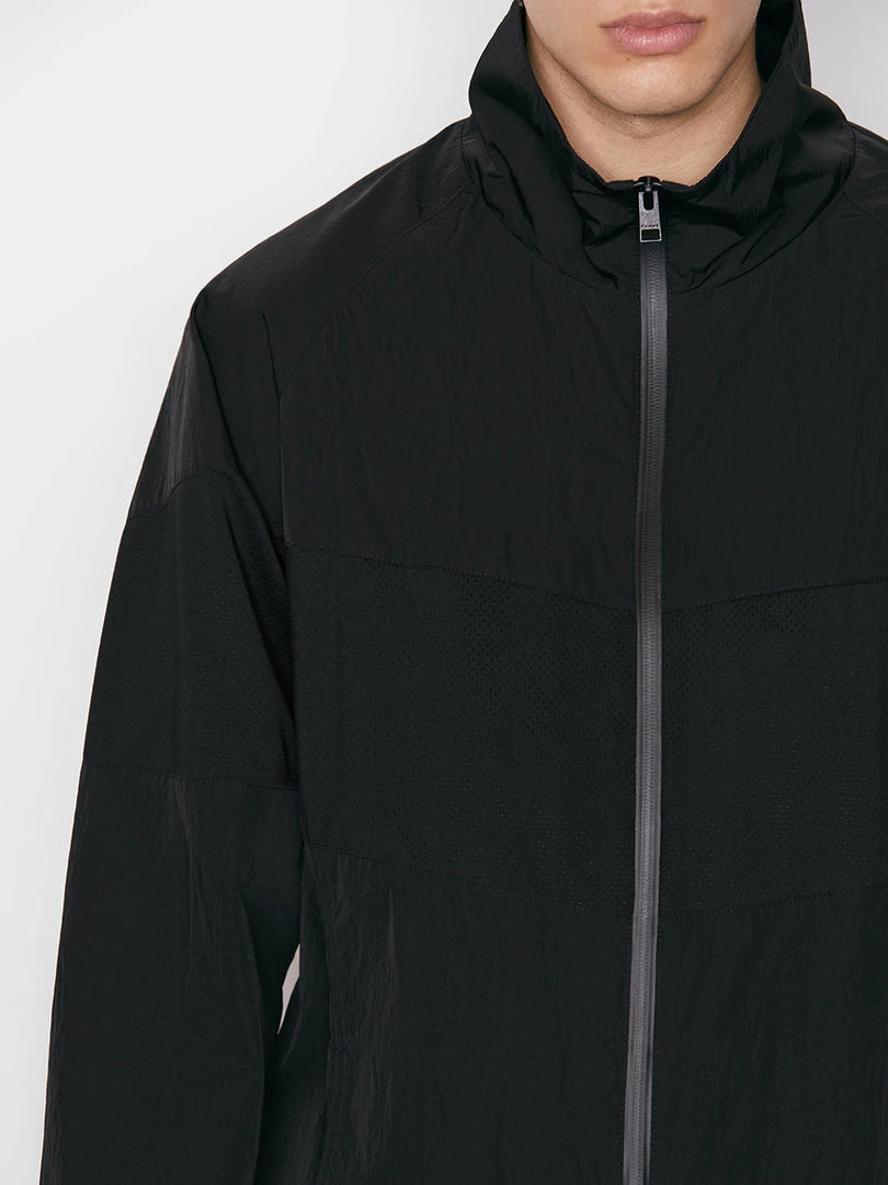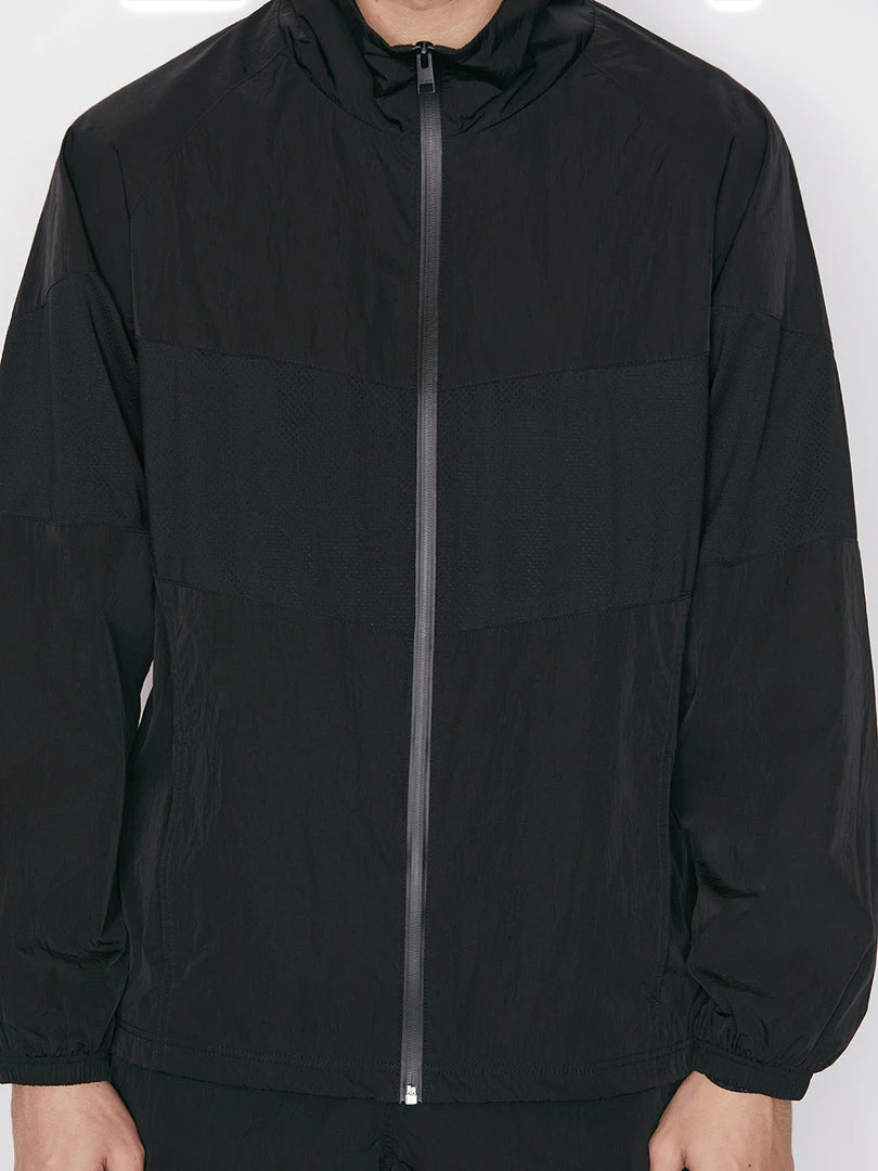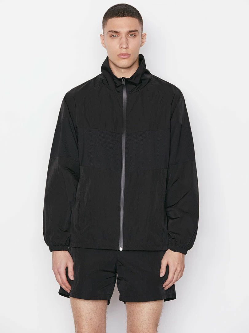 The summer-weight layer for athletics, athleisure, and laid-back evenings outdoors. This full-zip track jacket features a tonal chevron detail, adjustable elastic cords, slide pockets, and is made with breathable nylon.