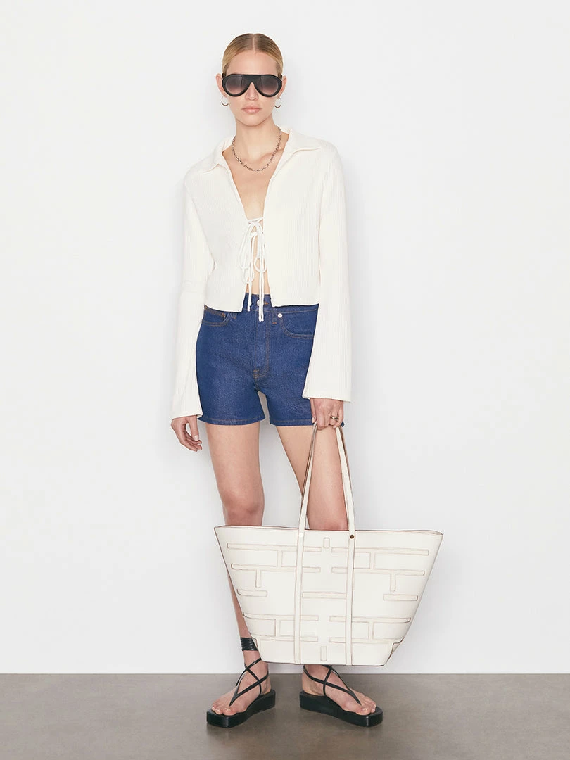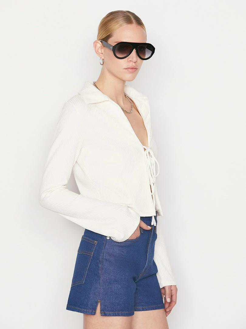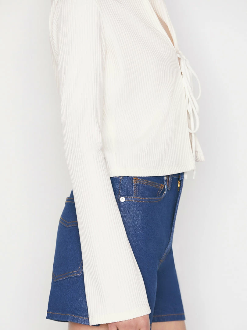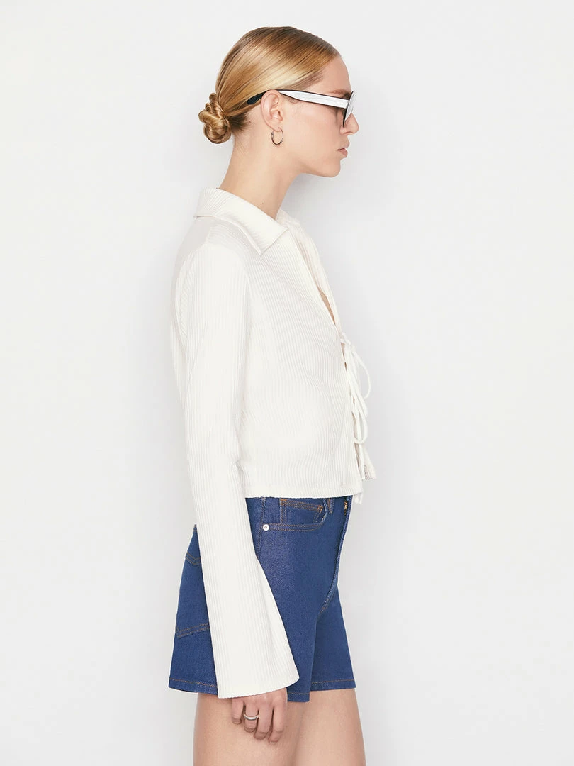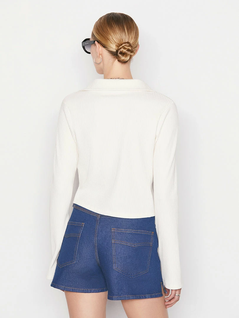 New π Frame-denim π© Women Bell Sleeve Rib Polo — Bone π