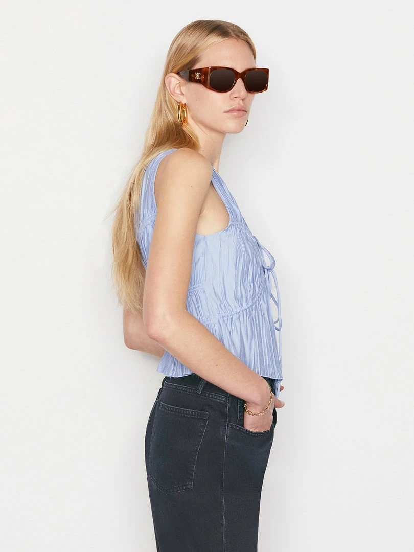 Promo π Frame-denim π© Women Cinched Crinkle Tank — Chambray Blue π