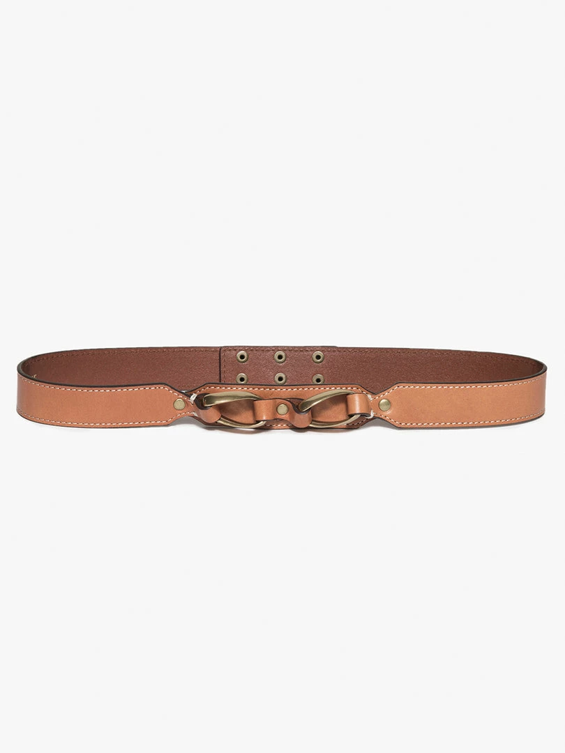This exploration of the equestrian aesthetic gives a luxurious feel in any season, and instantly elevates any look. In tan 100% leather with a pair of twisted links in brushed gold at the front and a snap closure at the back, itβs an ultra versatile accessory to add to your collection.