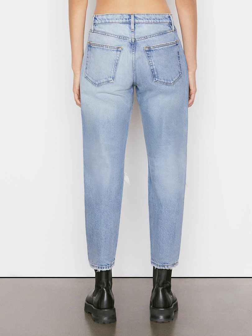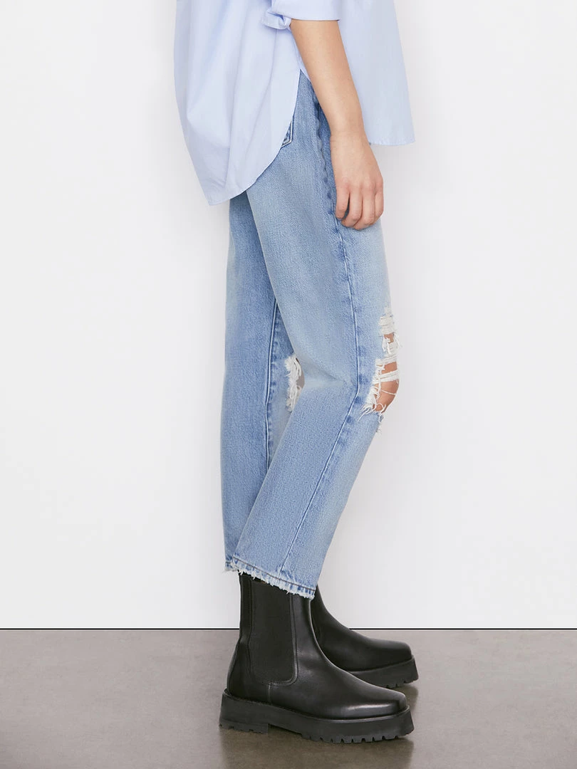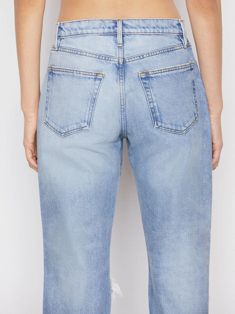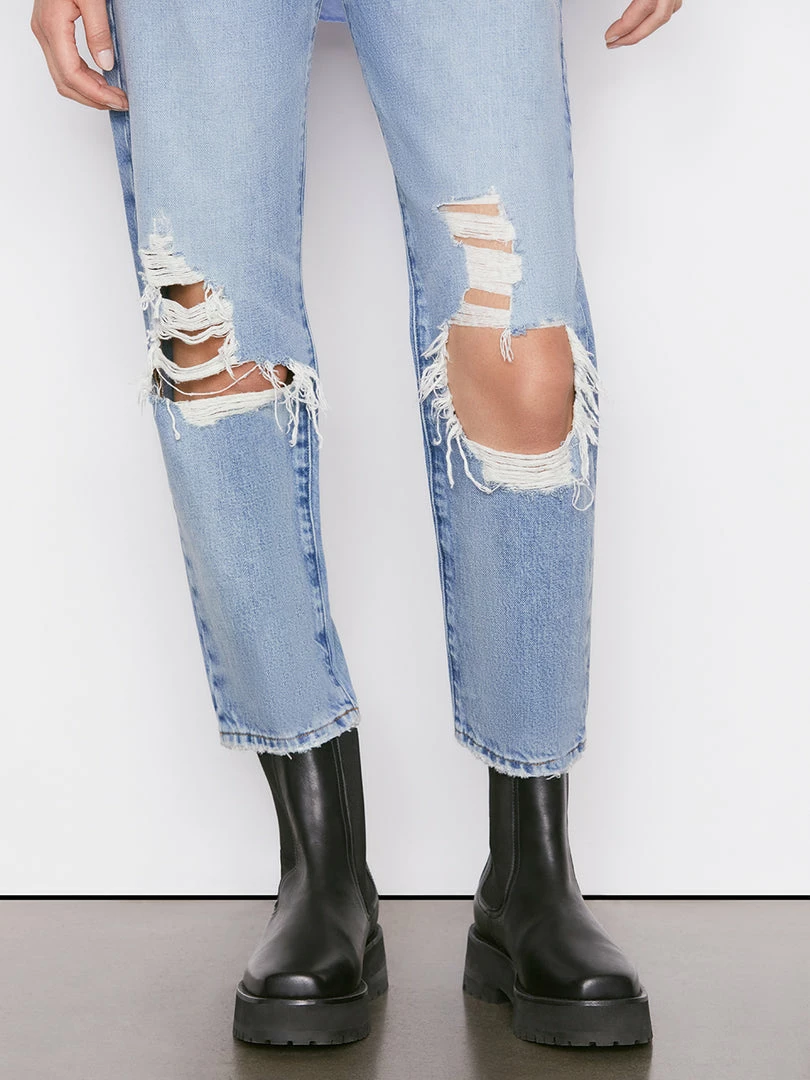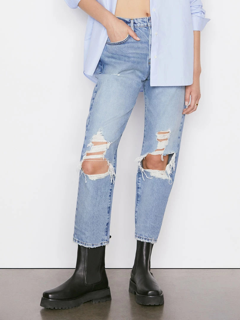 Le Original is a FRAME cult-favorite for vintage-inspired style, featuring a slim straight-leg and a high-rise waist that cinches in for a curve-enhancing silhouette. Broken-in with fading through the thighs, ripped knees, and destruction at the waist and pockets, Sunkissed adds an edgy-chic allure to any look.