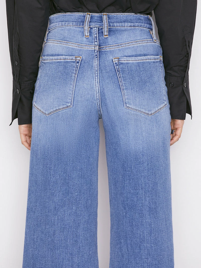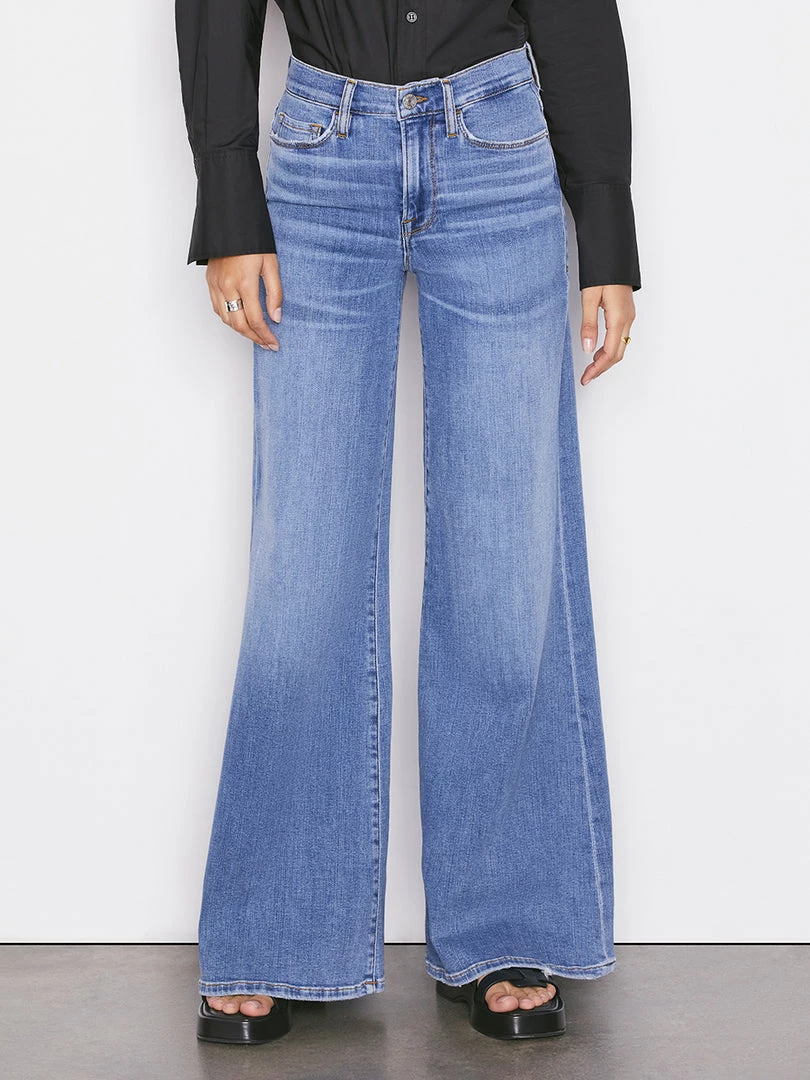 Classic five-pocket denim styling with a high-rise, wide-leg fit that creates a sophisticatedβand flatteringβsilhouette. Crafted from premium stretch denim for superior comfort, Le Palazzo in Blue Fade is a medium-blue indigo jean with whiskering and fading for character and style.