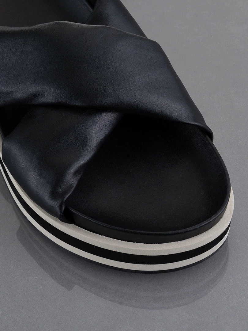 Featuring a Noir-and-white stacked platform sole that elevates laid-back looks and adds height without sacrificing comfort, these buttery leather slides work with breezy linen dresses and wide-leg denim alike. Pack this versatile pair for warm weather getaways, and style with cutoff shorts and tees for a nod-to-the-90s lift all summer long.