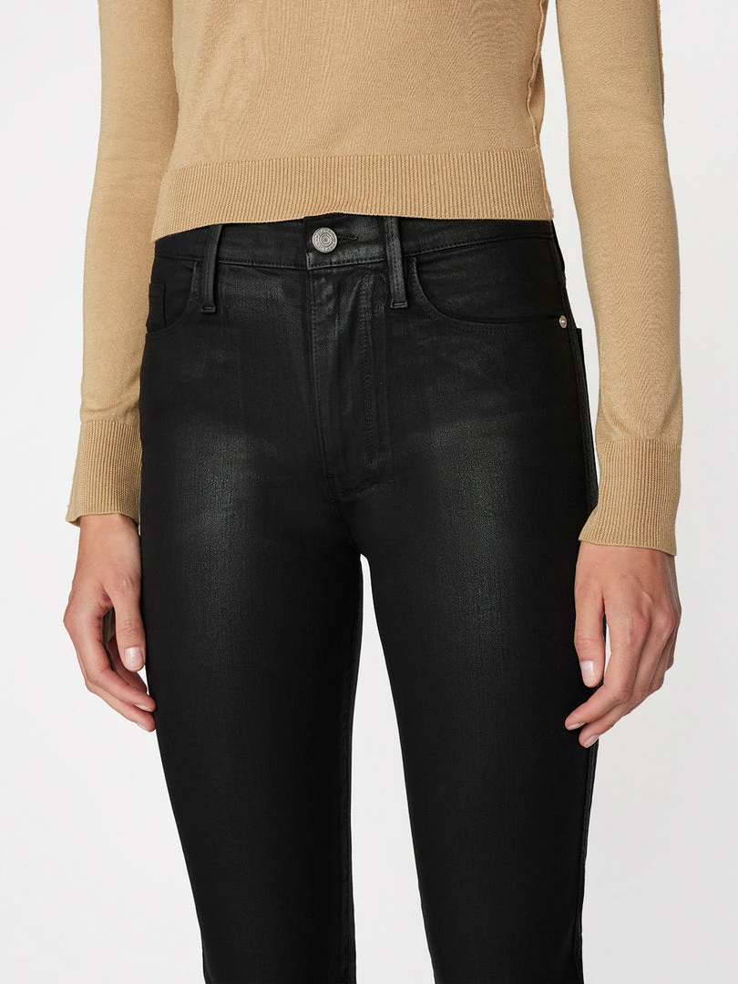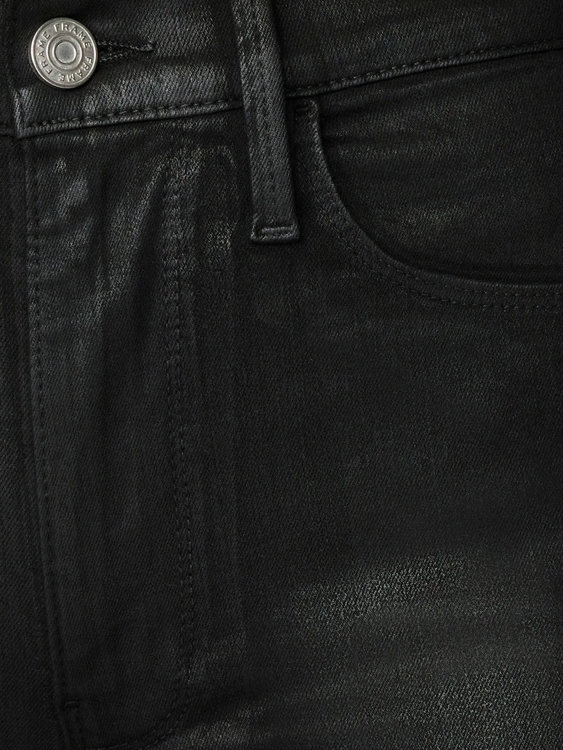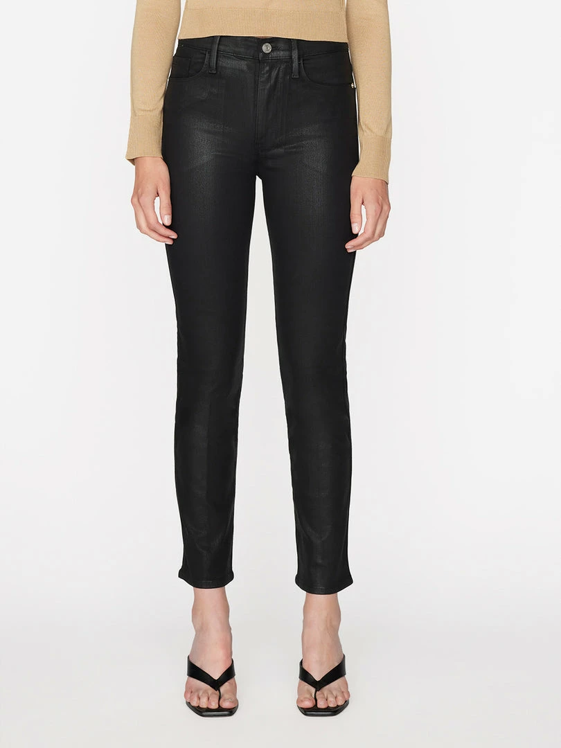 This classic high-rise, straight-leg jean is crafted from FRAMEβs signature coated denim in essential Noir. Wear yours with silky tops for office dressing and nights out, and tees and cashmere for an elevated twist on everyday denim outfitting. This pair features super-stretch denim for comfort and a sleek silhouette.