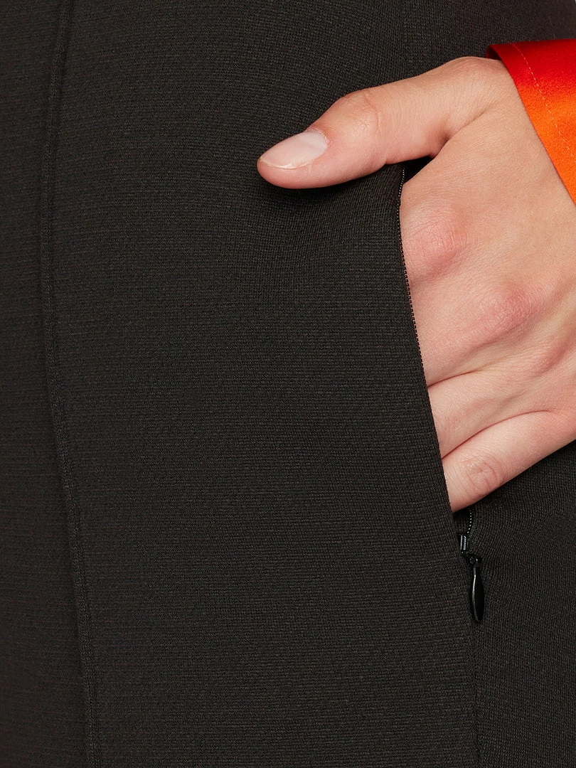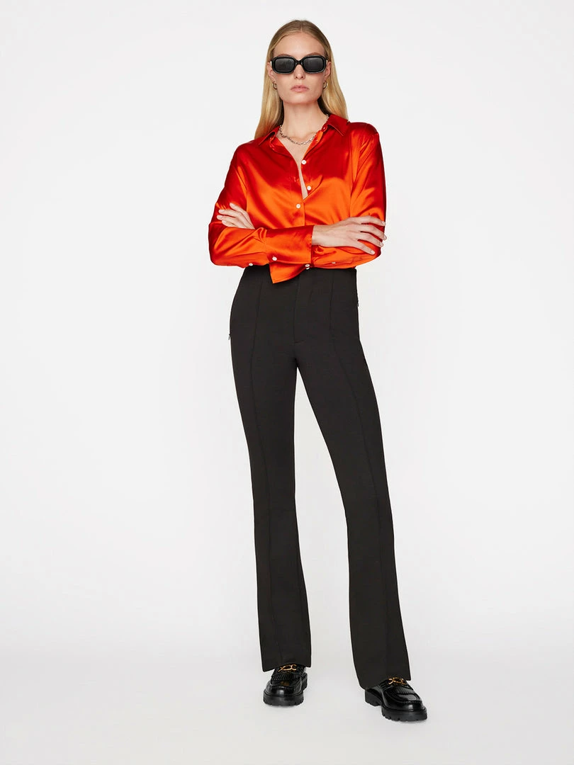 Crafted from jersey for stretch, comfort, and a sleek silhouette, these seamed trousers feature a sleek wasitband, invisible side-zip pockets, and a close fit through the seat and thighs that finishes in an ever-so-slight flare.