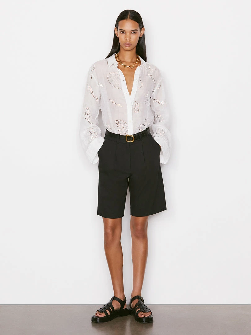 Rethink event dressing in summer’s most modern look. With a loose fit that hangs gracefully from a mid-rise waist, the Relaxed Bermuda Short is a twist on suiting that’s just as chic for office days and nights out. Made from lightweight fabric with front pleats, front trouser pockets, and faux back pockets for a flattering fit.