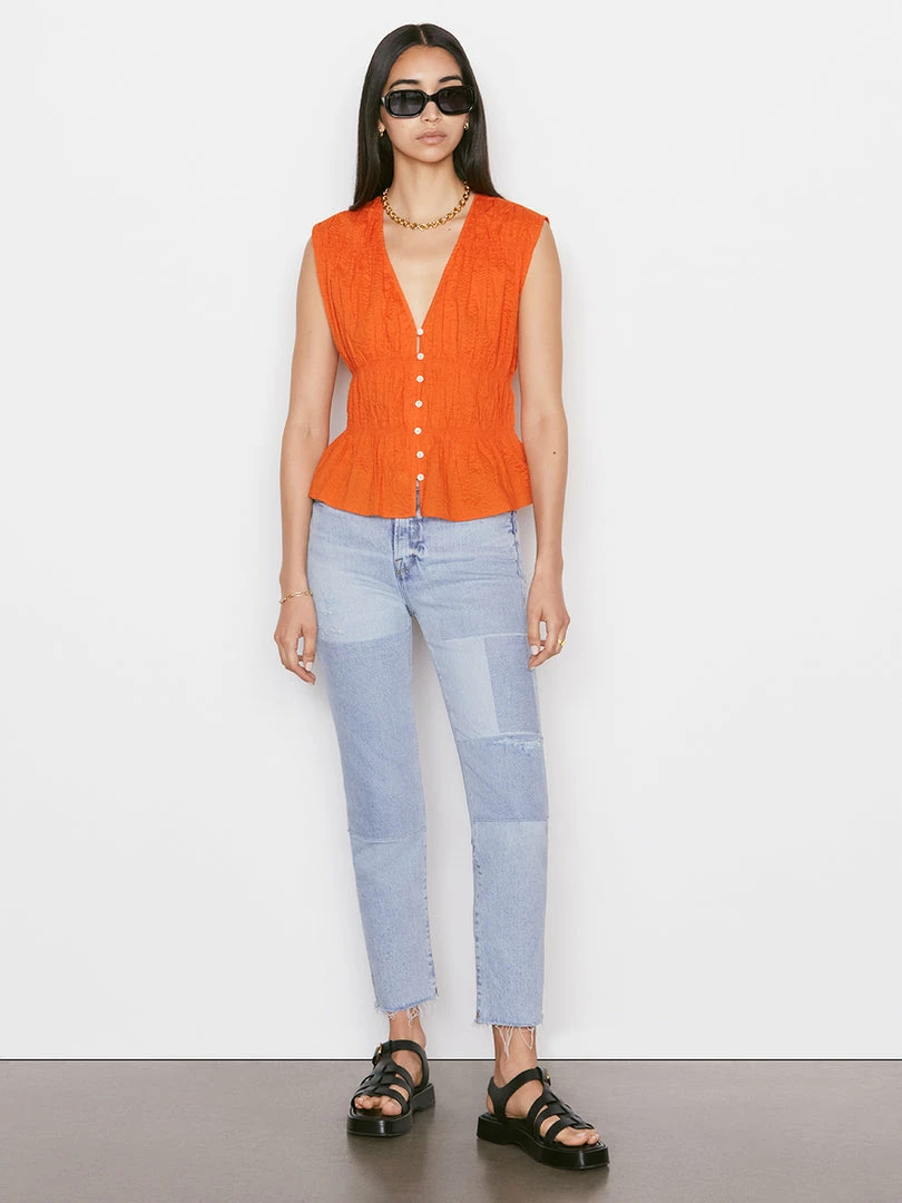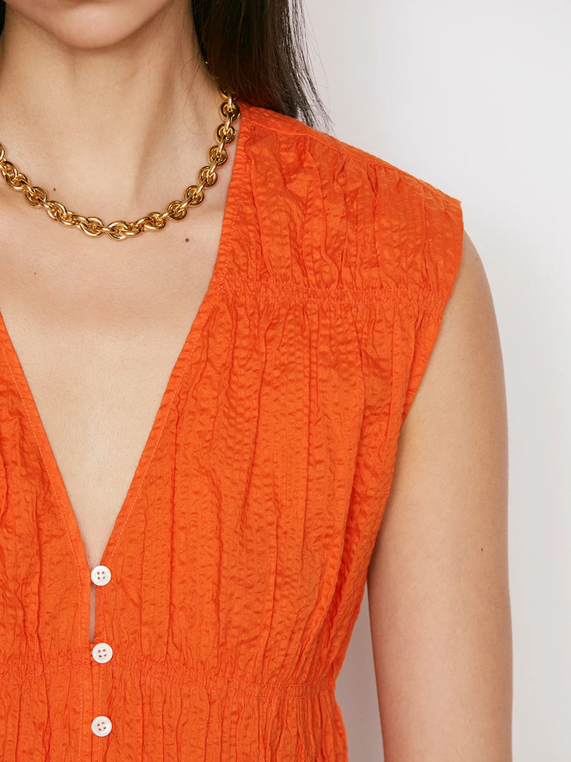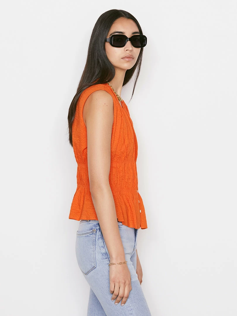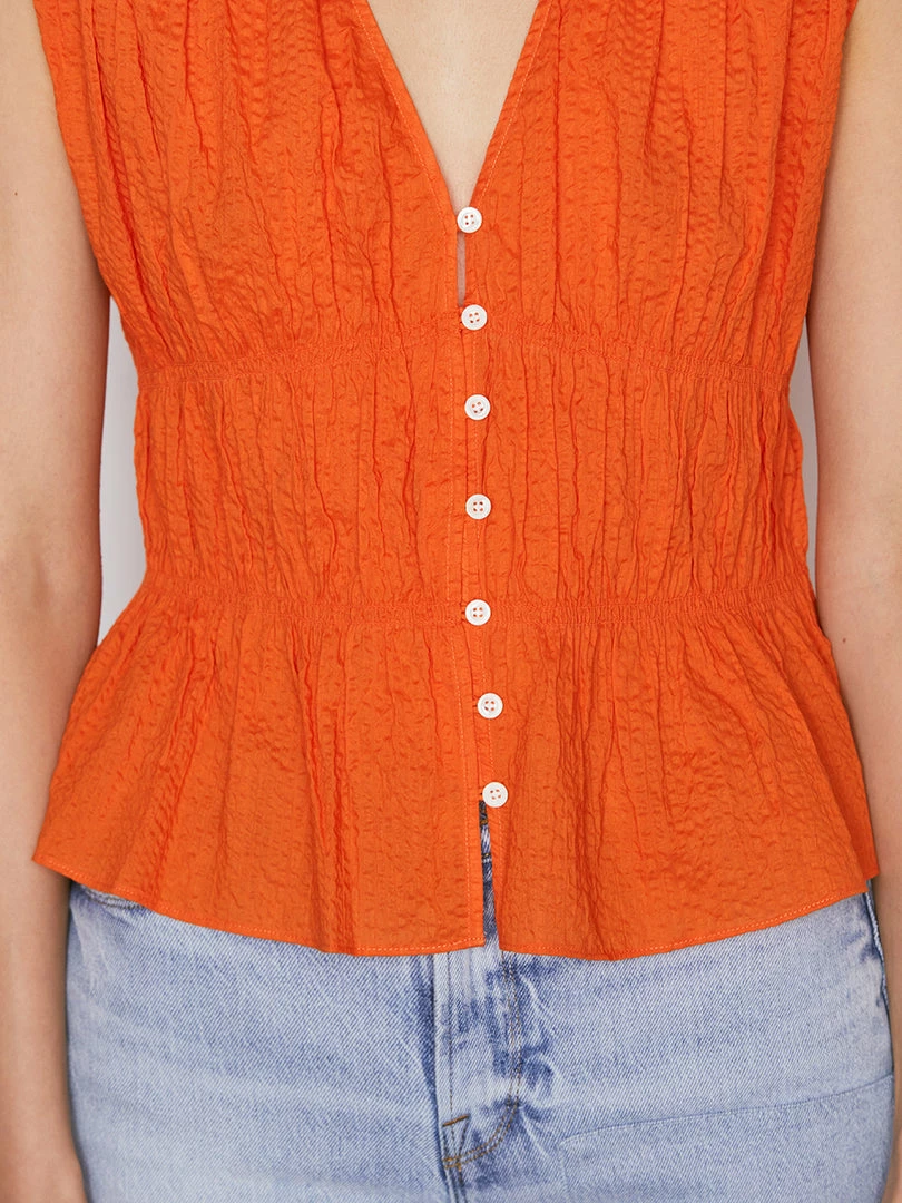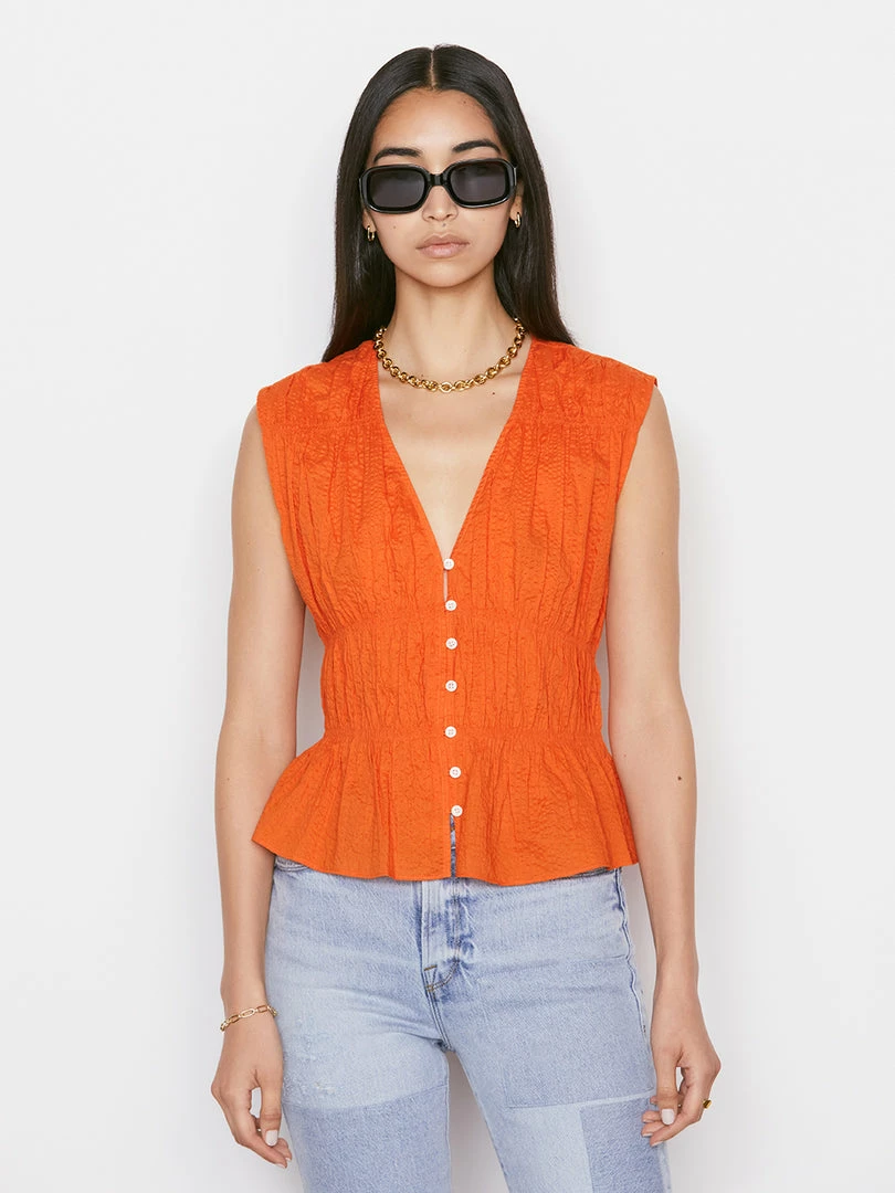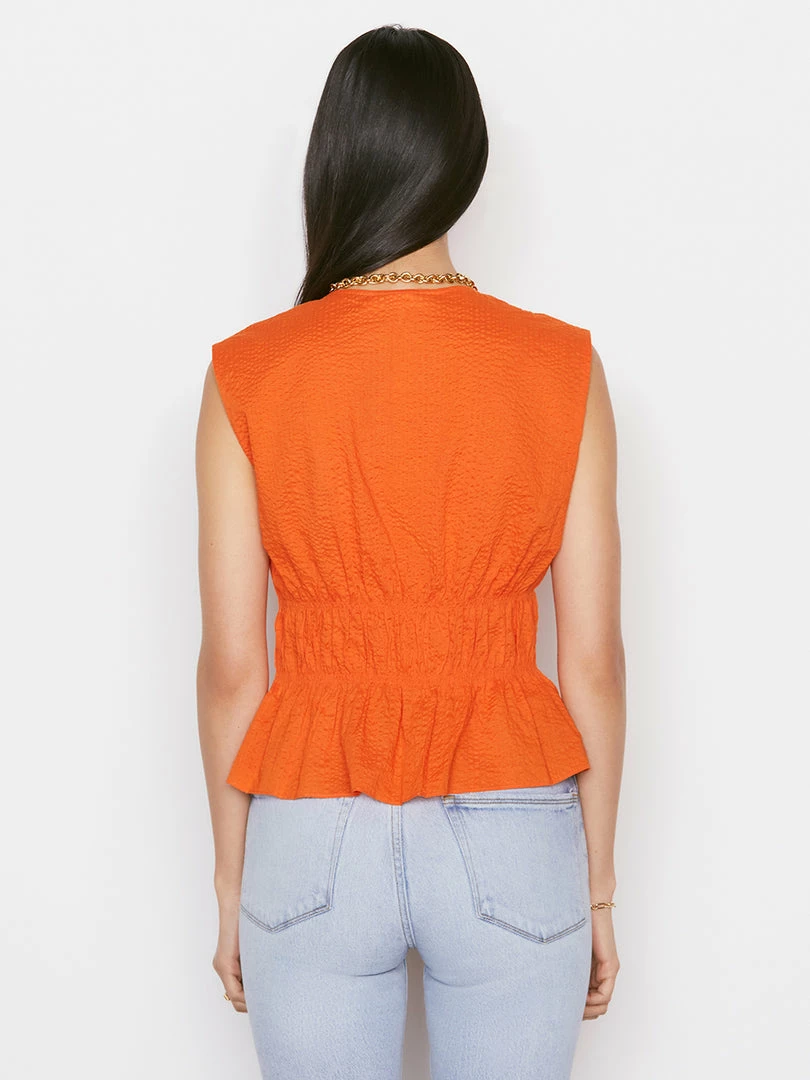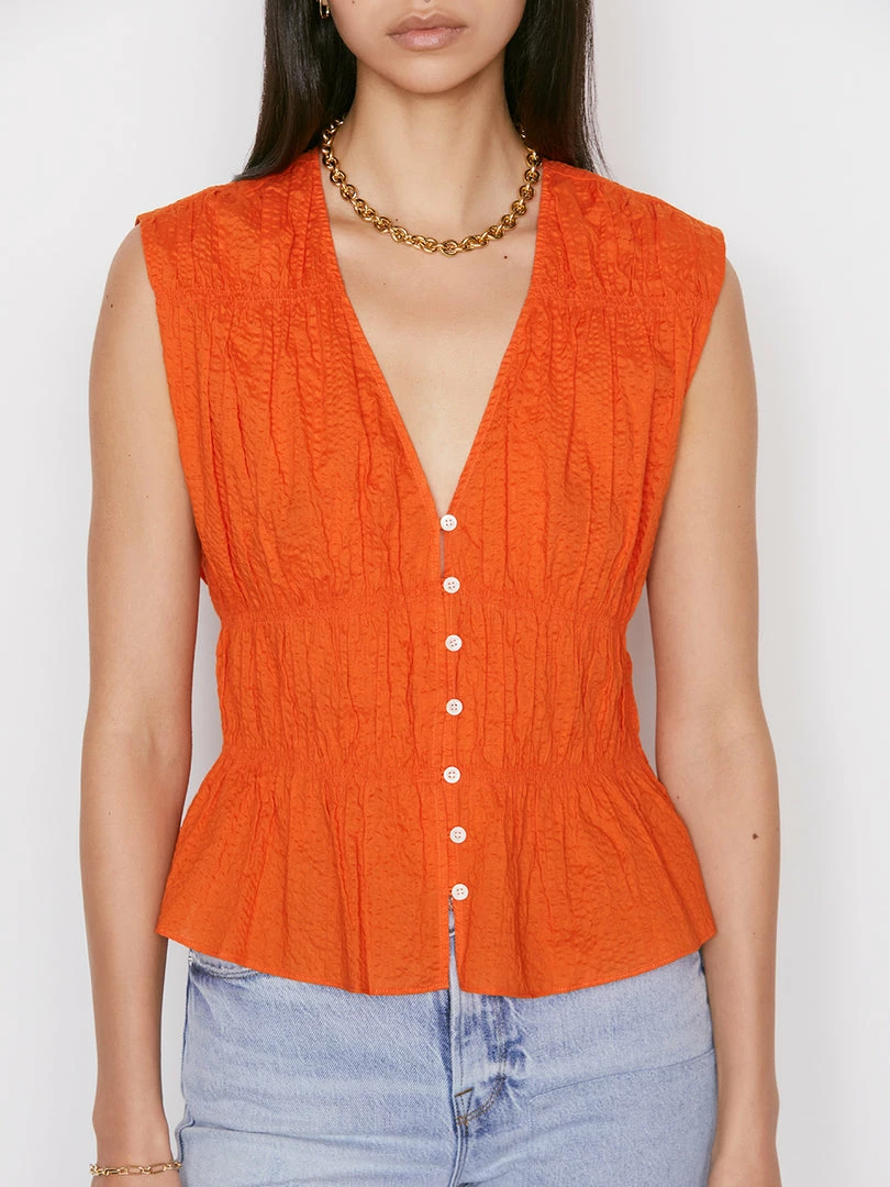 Best Sale π Frame-denim π© Women Ruched V-Neck Sleeveless Blouse — Orange Crush π