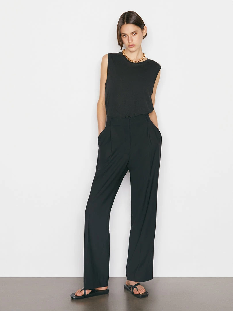 SKU: frame-denim-6198380789936 Categories: Clothing, Women Tags: _badge:sustainable, Collection::womenclothing, Filter-color::Black, Fit:true, Remove New Tag, Season::SU21, Styled::ilona-relaxed-pleated-trouser-noir, Swatch:Swingy Muscle Tank