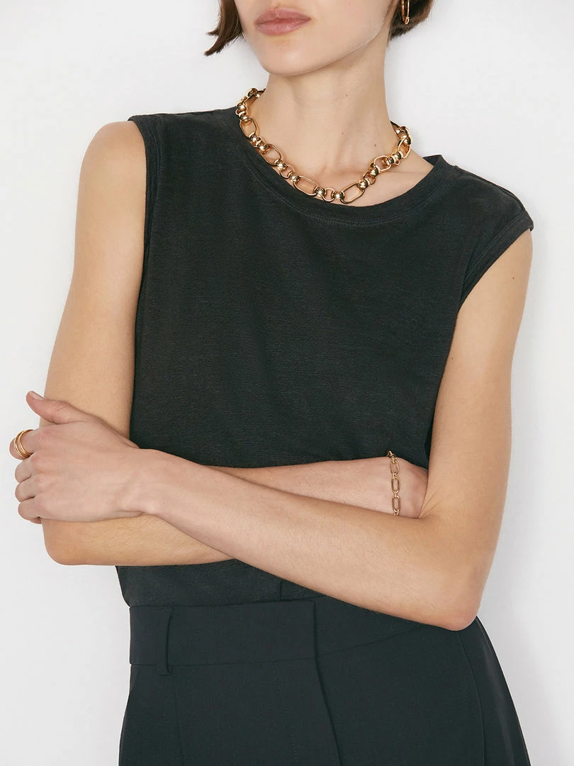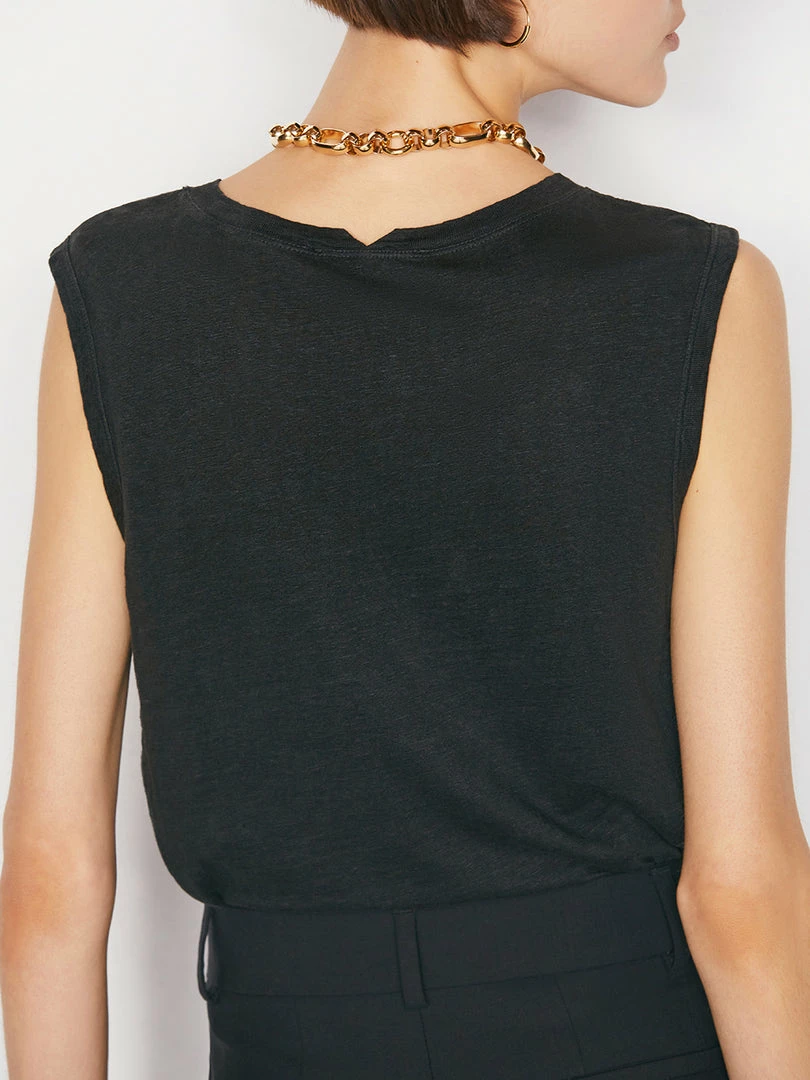 This wardrobe-essential tank topβmade from 100% organic linenβis cut for a loose-and-swingy fit with a round neckline and muscle sleeves. Wear yours with everything from jeans to joggers and sweatpants.